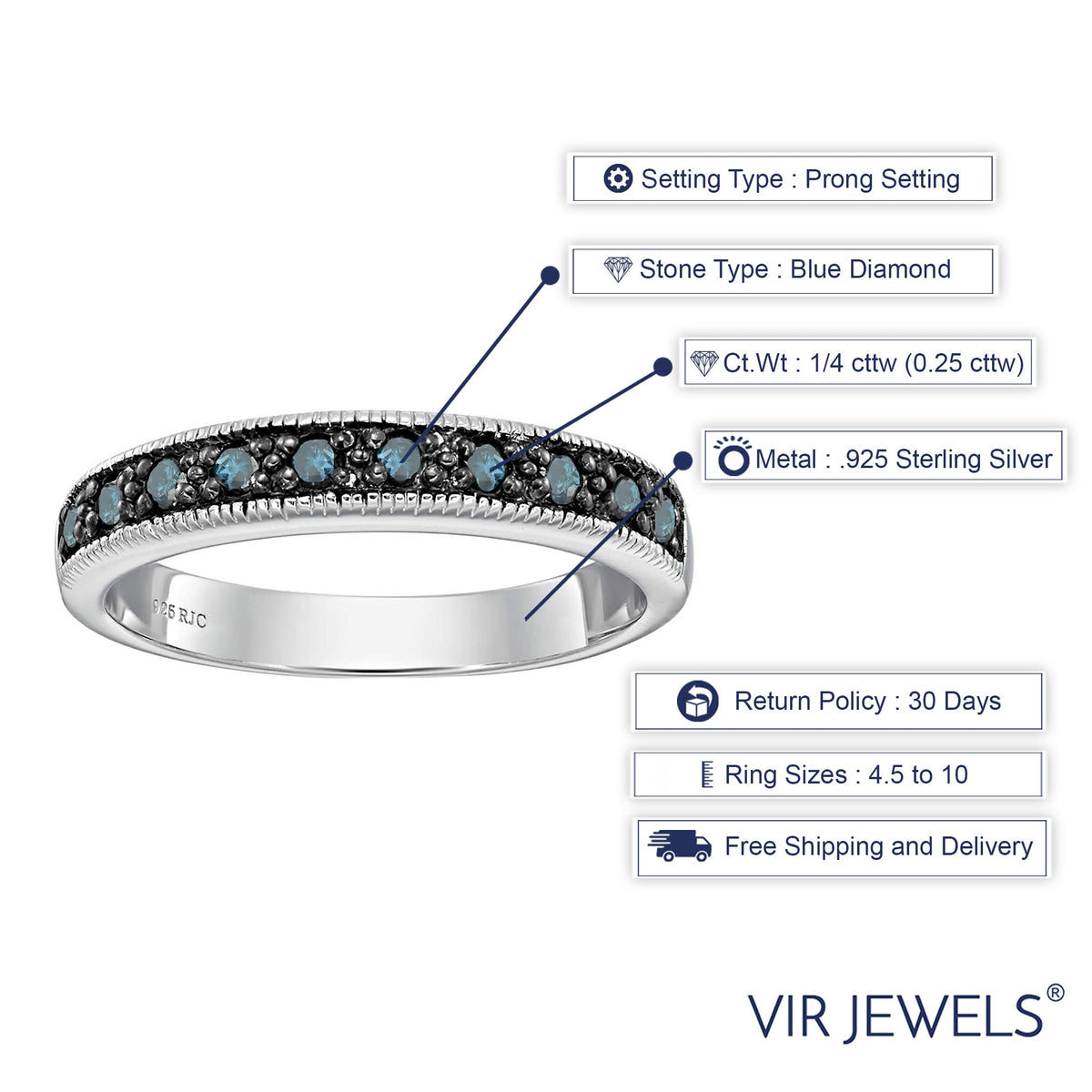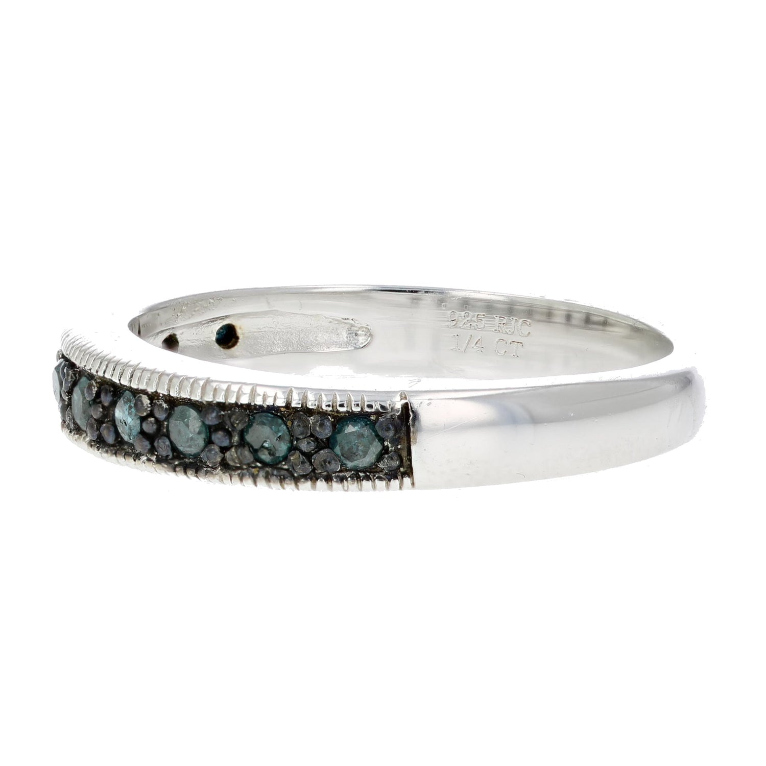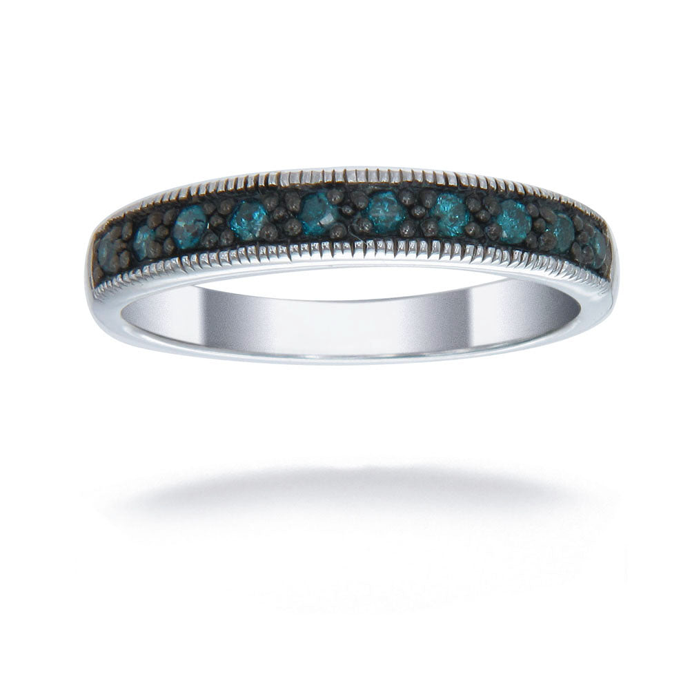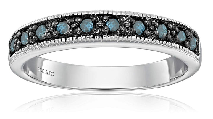 1/4 cttw Blue Diamond Ring .925 Sterling Silver with Milgrain and Black Rhodium