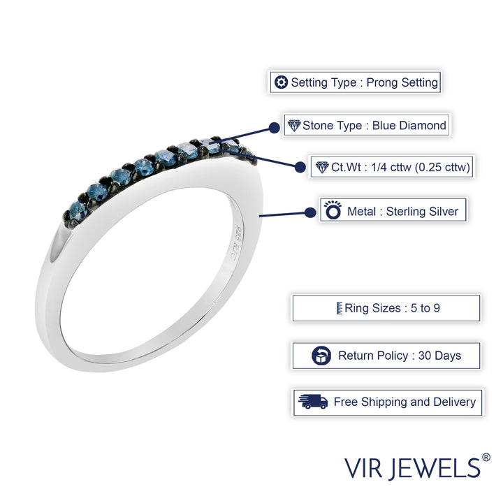 1/4 cttw Blue Diamond Ring Wedding Band .925 Sterling Silver Prong Set Round