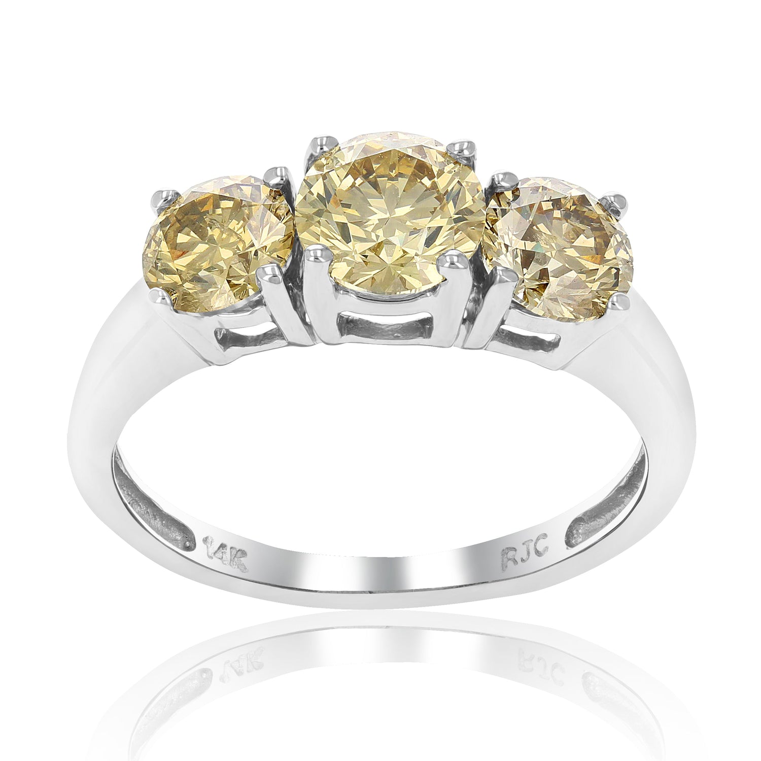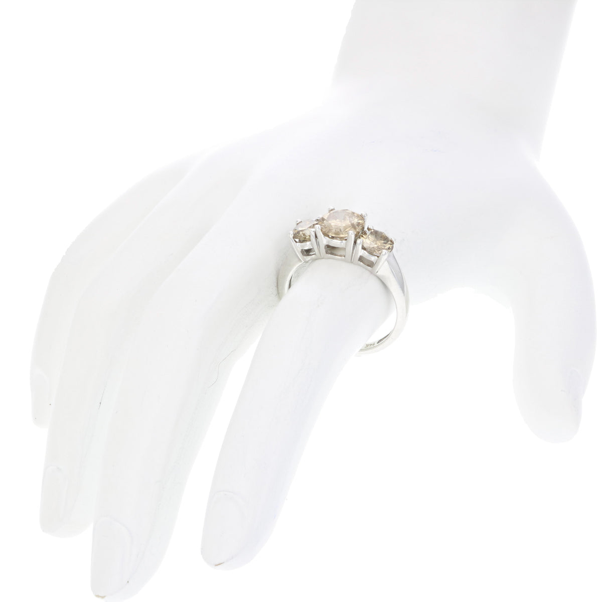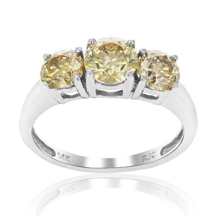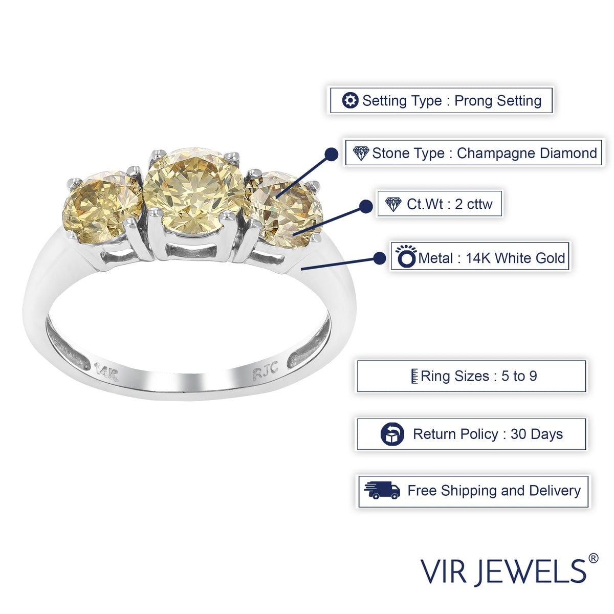 2 cttw 3 Stone Round Champagne Diamond Engagement Ring 14K White Gold Bridal