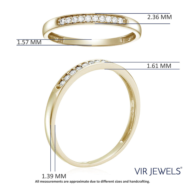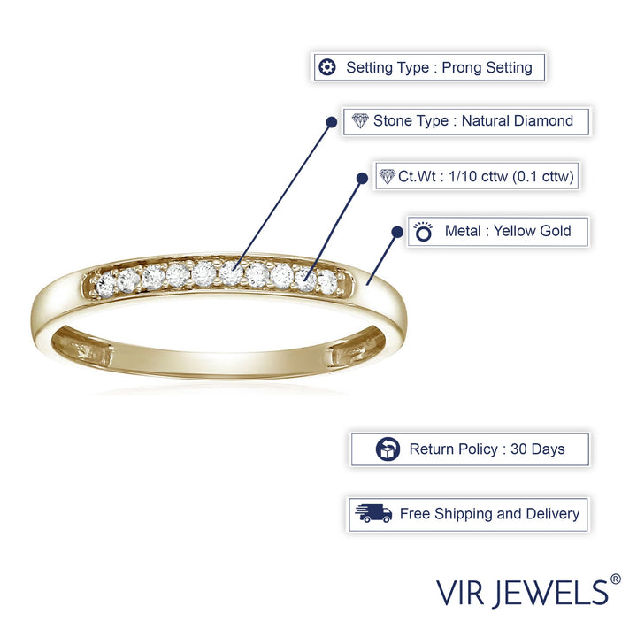 This Diamond Wedding Band by Vir Jewels is a delicate and timeless piece crafted in 10K white or yellow gold. Featuring ten natural diamonds in a prong setting, this elegant ring is perfect for wedding bands, stacking, or everyday wear.
