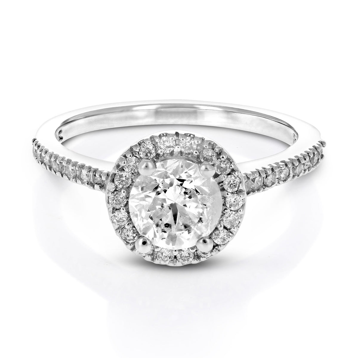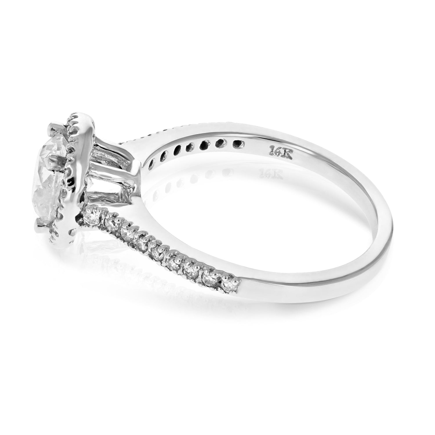 1.30 cttw IGI Certified Diamond Engagement Ring 14K White Gold Halo Prong Bridal