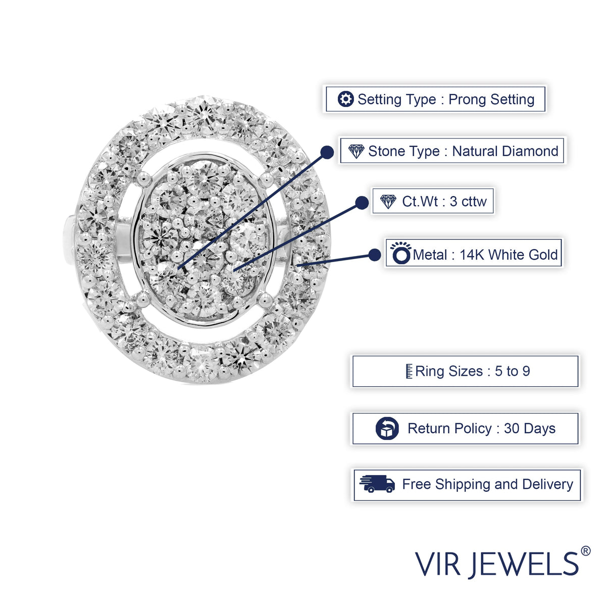 This Oval Composite Diamond Engagement Ring by Vir Jewels radiates timeless elegance. Featuring 32 natural diamonds in a prong setting, this 14K white gold ring is designed to maximize brilliance and create a bold, sophisticated statement. A luxurious choice for those who appreciate classic beauty.