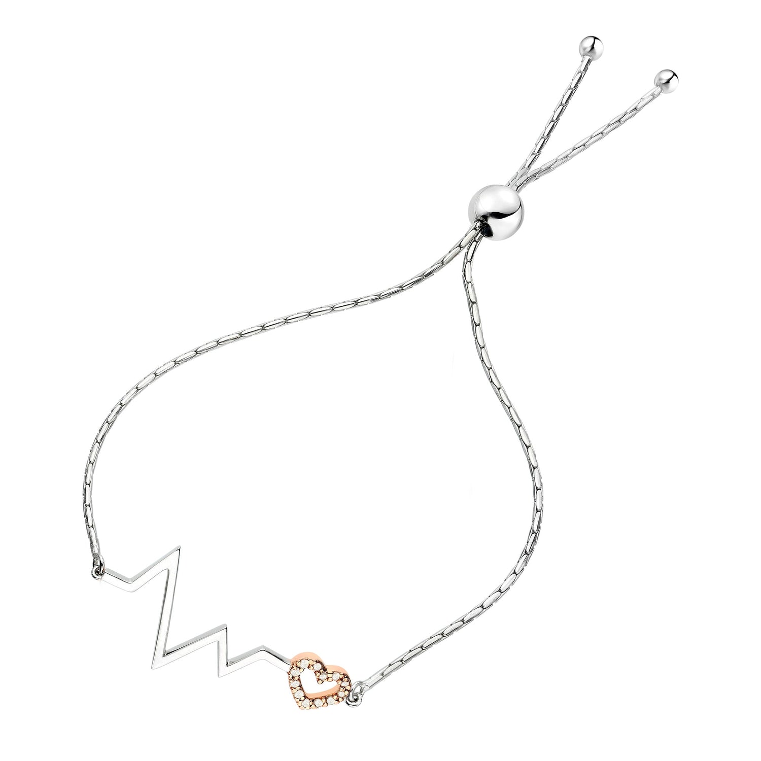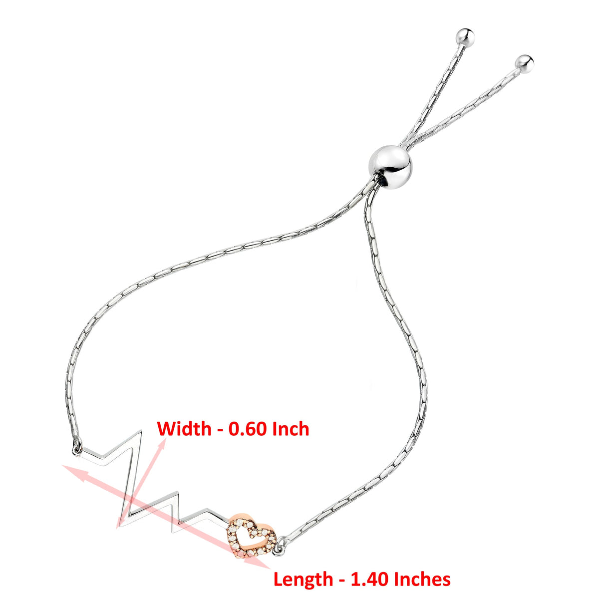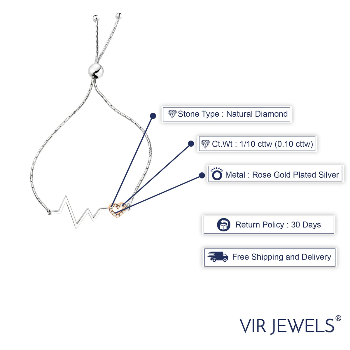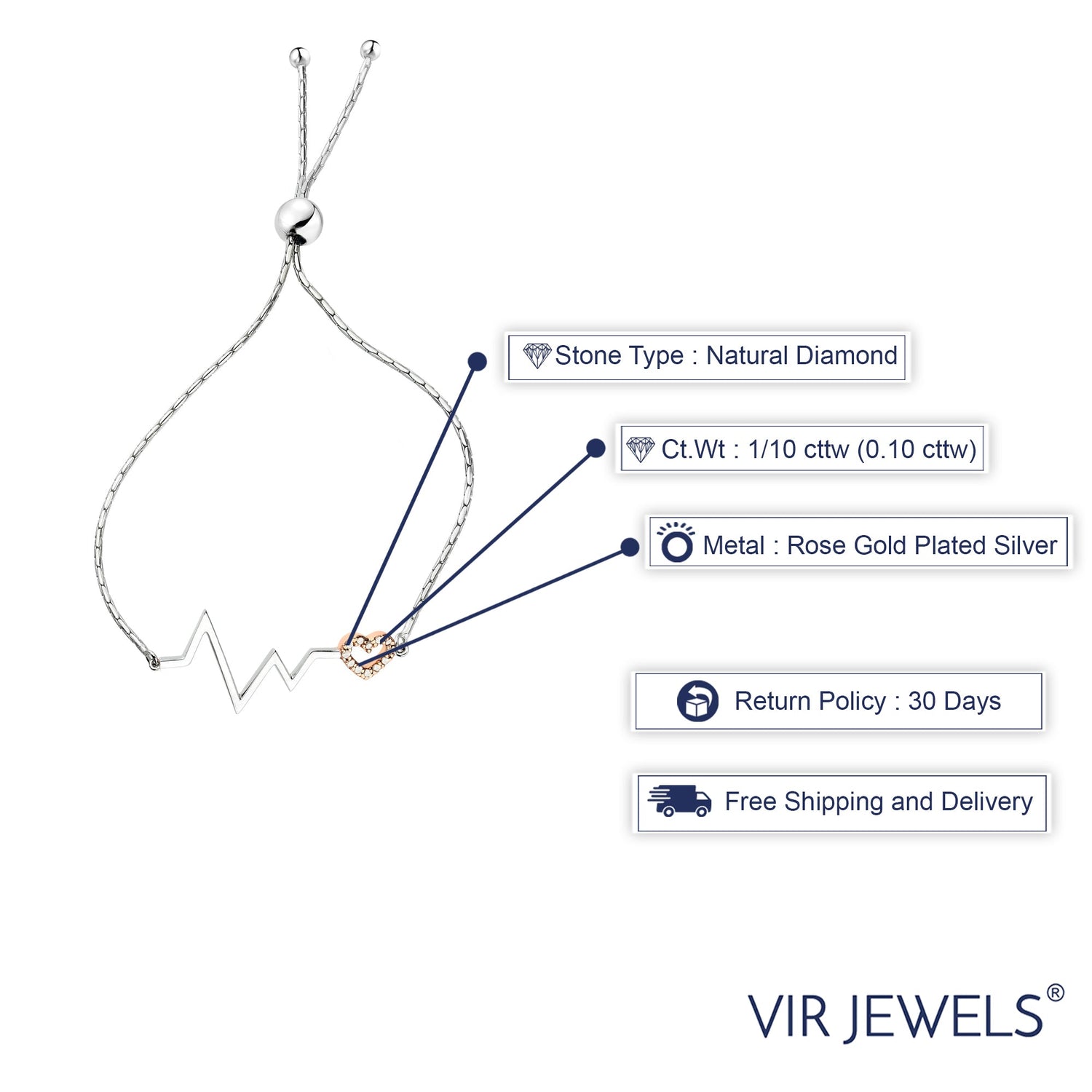 This Diamond Heartbeat Bolo Bracelet by Vir Jewels is a stylish and meaningful piece, symbolizing the rhythm of love. Designed in rose gold-plated sterling silver, this adjustable bracelet features a heartbeat motif adorned with 12 sparkling natural diamonds, perfect for everyday elegance.