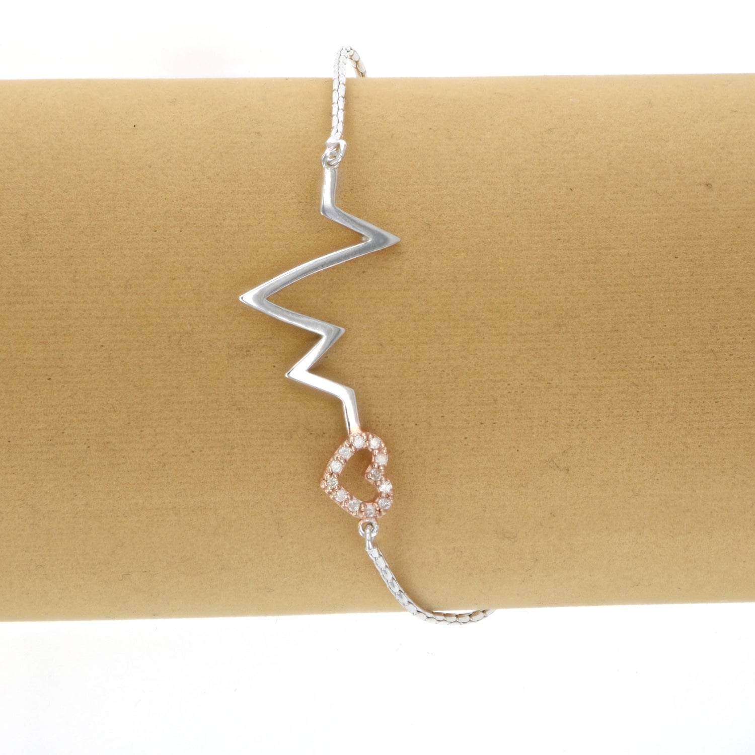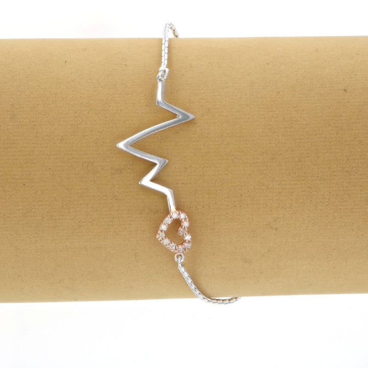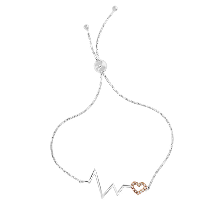 1/10 cttw Diamond Bracelet Rose Gold Plated Over .925 Sterling Silver Heartbeat