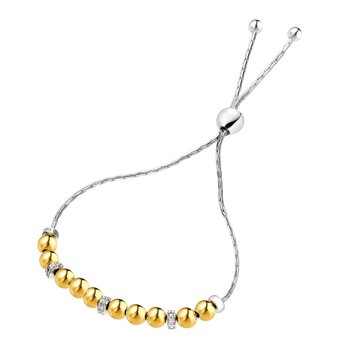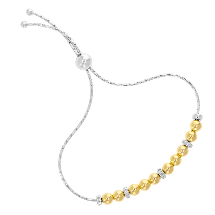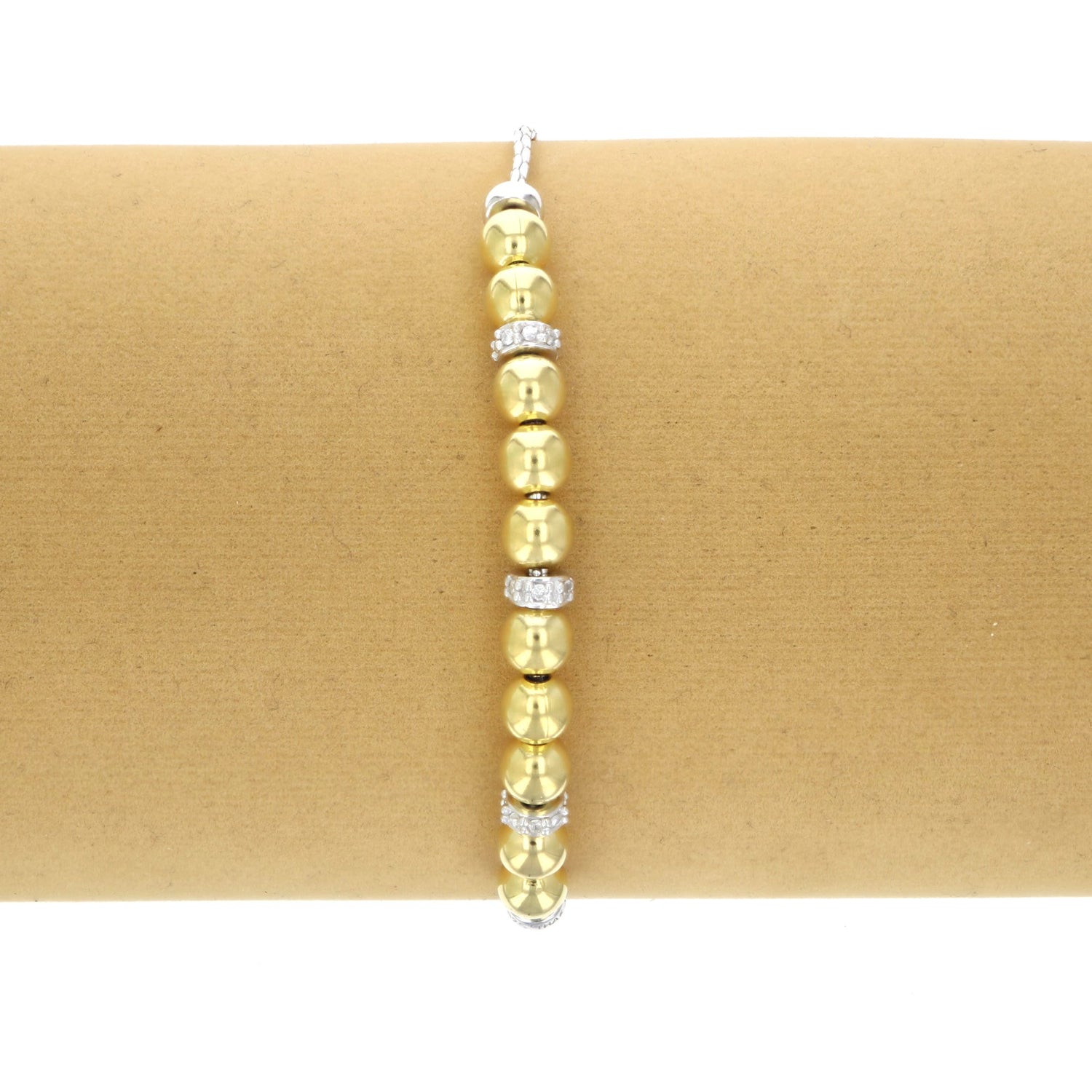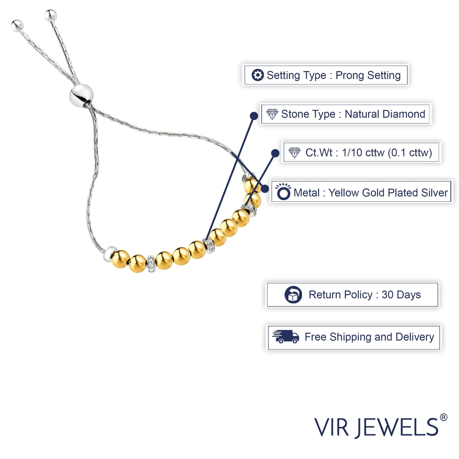 1/10 cttw Diamond Bolo Bracelet Yellow Gold Plated over Silver Beads Style