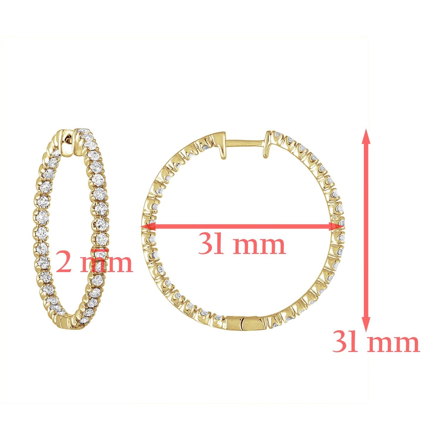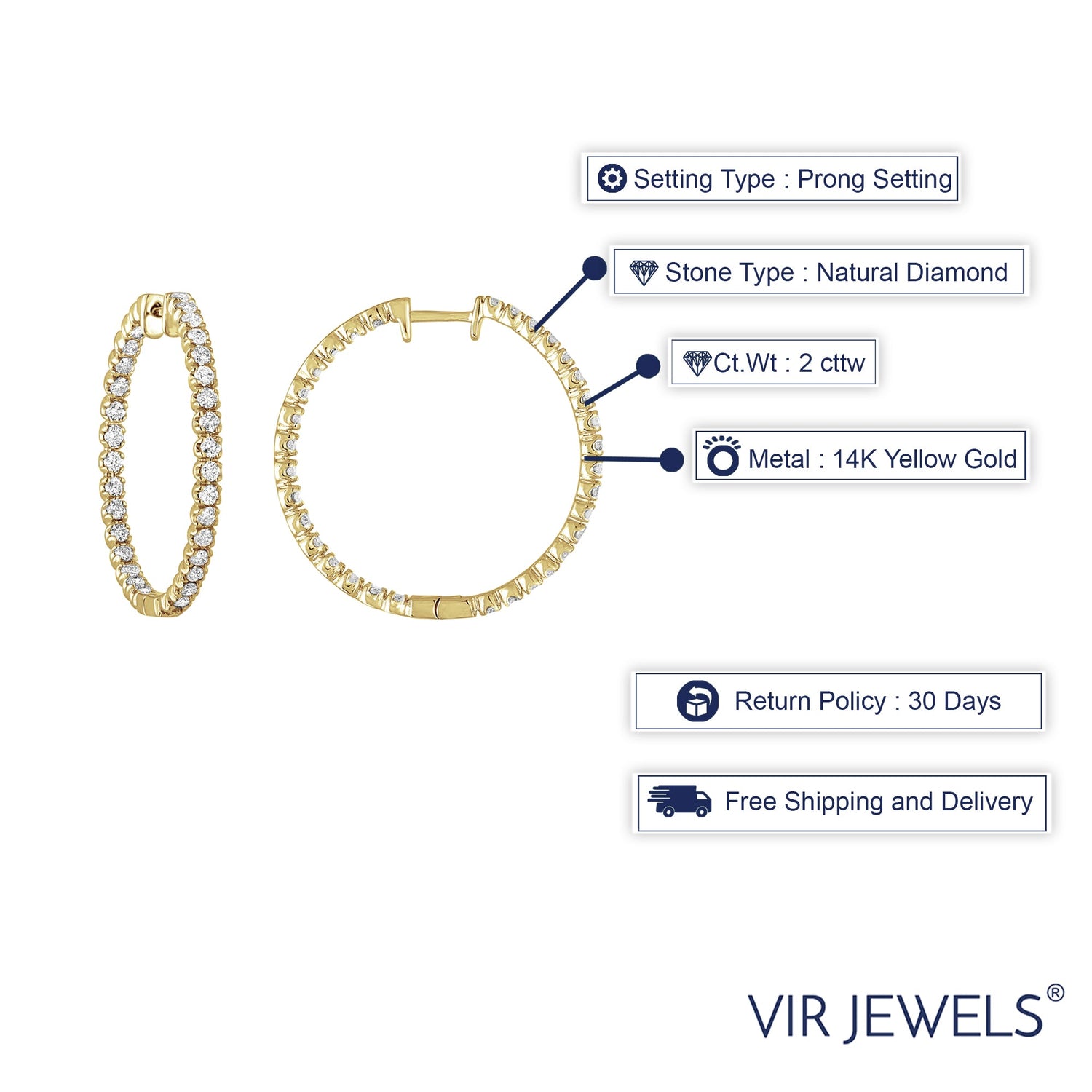 2 cttw Diamond Inside Out Hoop Earrings 14K Yellow Gold Round Prong 1.25 Inch