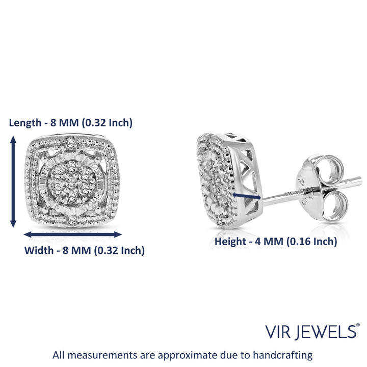 These Square-Shaped Diamond Stud Earrings by Vir Jewels bring a modern touch to a timeless design. Crafted in sterling silver with rhodium plating, these earrings feature 18 dazzling diamonds, making them a versatile and elegant choice for any occasion.