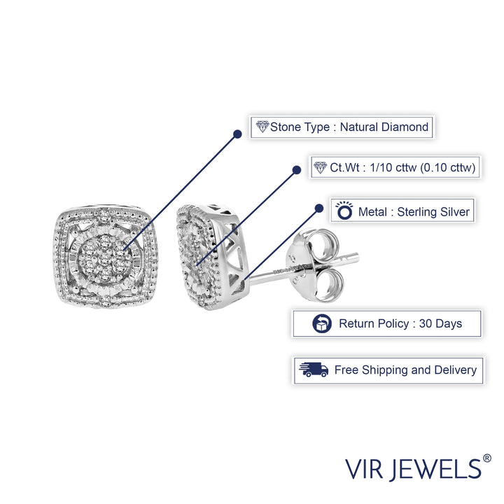 1/10 cttw Diamond Earrings in .925 Sterling Silver Push Backs Square Shape