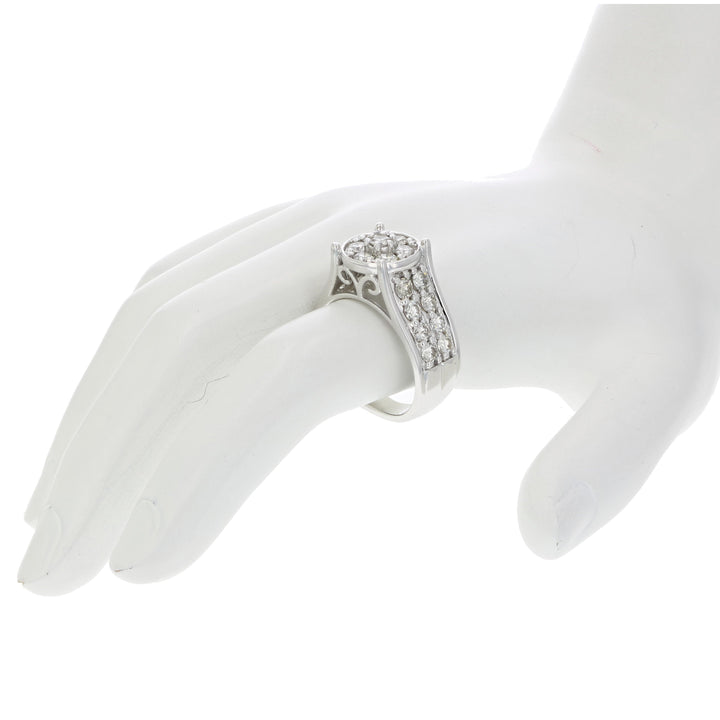 2 cttw Diamond Engagement Ring Round Cluster Composite 14K White Gold Bridal