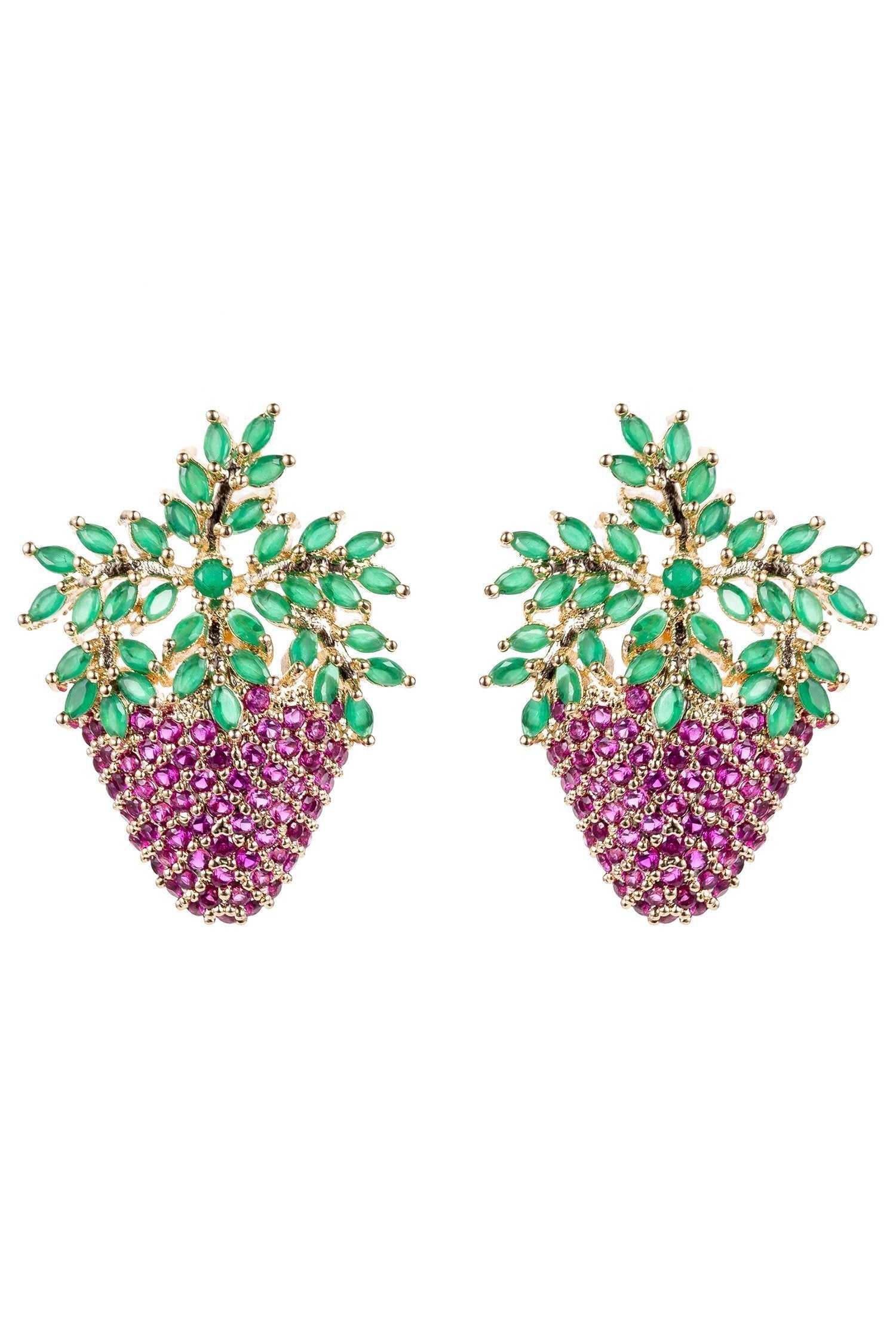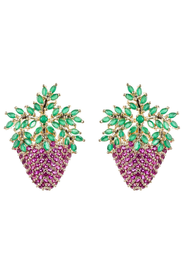 These Delite Earrings by Eye Candy LA bring a fresh and playful twist to classic studs. Inspired by vibrant strawberries, these earrings feature a charming leaf pattern and sparkling CZ crystals. A delightful choice for adding a pop of fun to any jewelry collection.