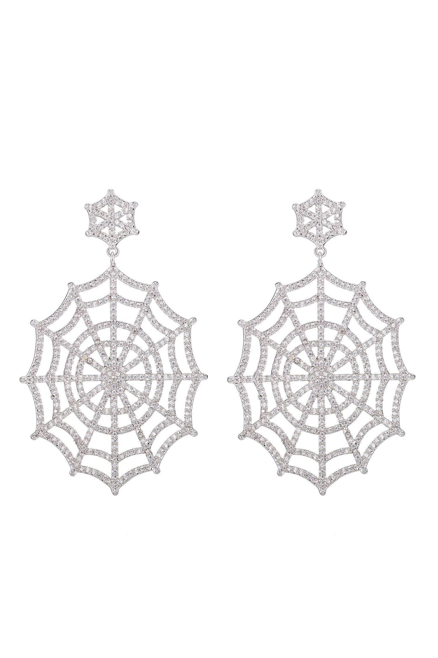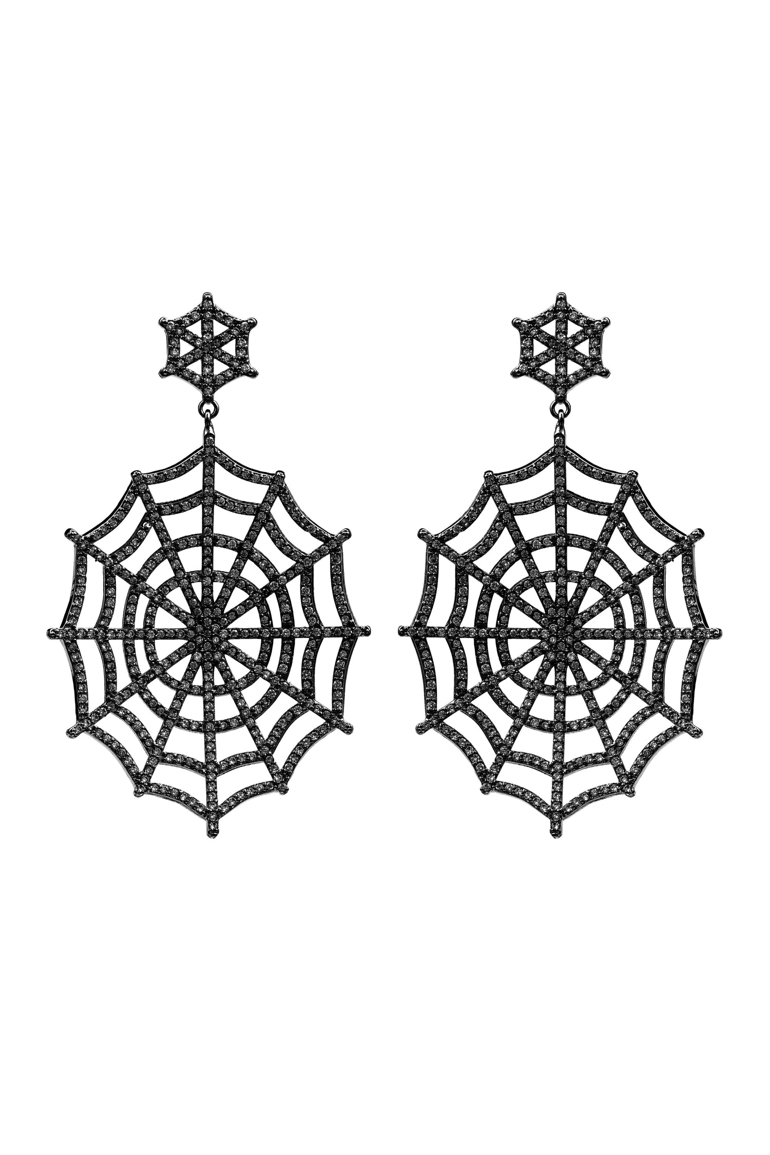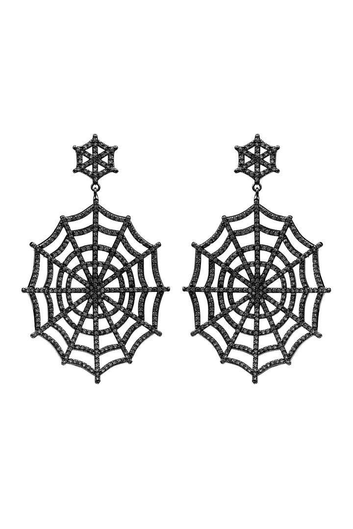 These Charlotte Earrings - Black by Eye Candy LA add a bold, mysterious touch to any look. Featuring an intricate spider web design, these drop earrings are adorned with black CZ crystals for a darkly elegant statement. Perfect for adding a subtle gothic aesthetic to casual outfits or completing a Halloween-inspired ensemble.