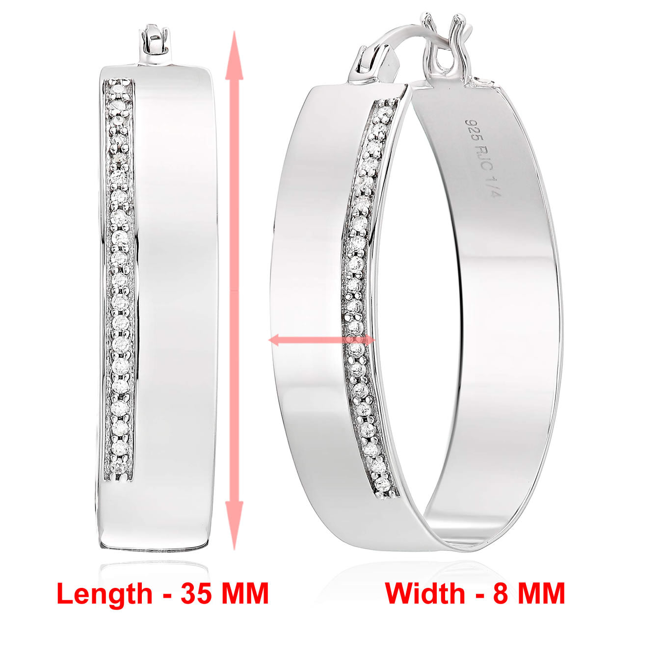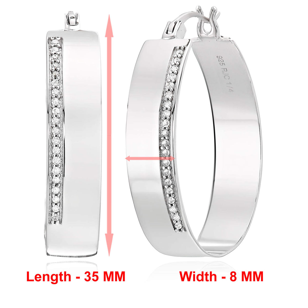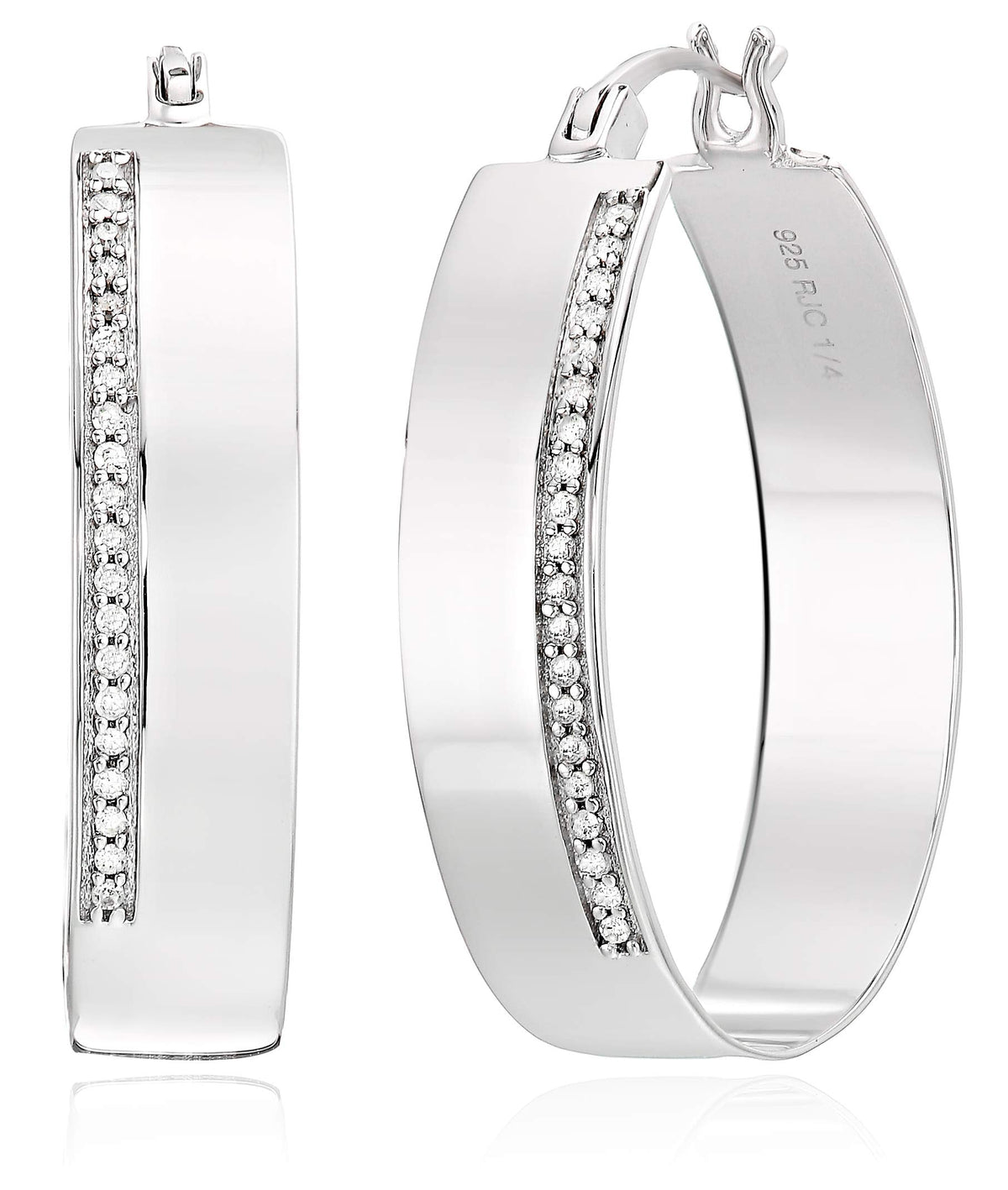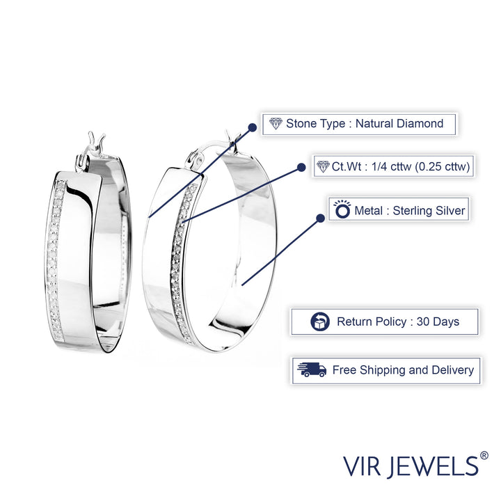 1/4 cttw Diamond Hoop Earrings .925 Sterling Silver with Rhodium Round 1.50 Inch
