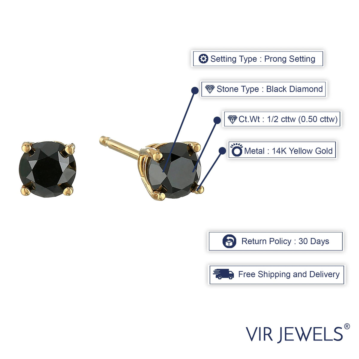 1/2 cttw Black Diamond Stud Earrings 14K White or Yellow Gold Round 4 Prong