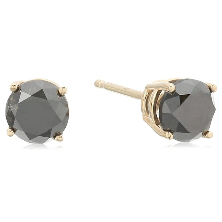 Handcrafted in 14K white or yellow gold, featuring two natural black diamonds totaling 1/2 cttw, with an I1-I2 clarity. Diamonds are heat-treated and set in a 4-prong basket setting. Secured with push-back (butterfly friction backs). April birthstone.