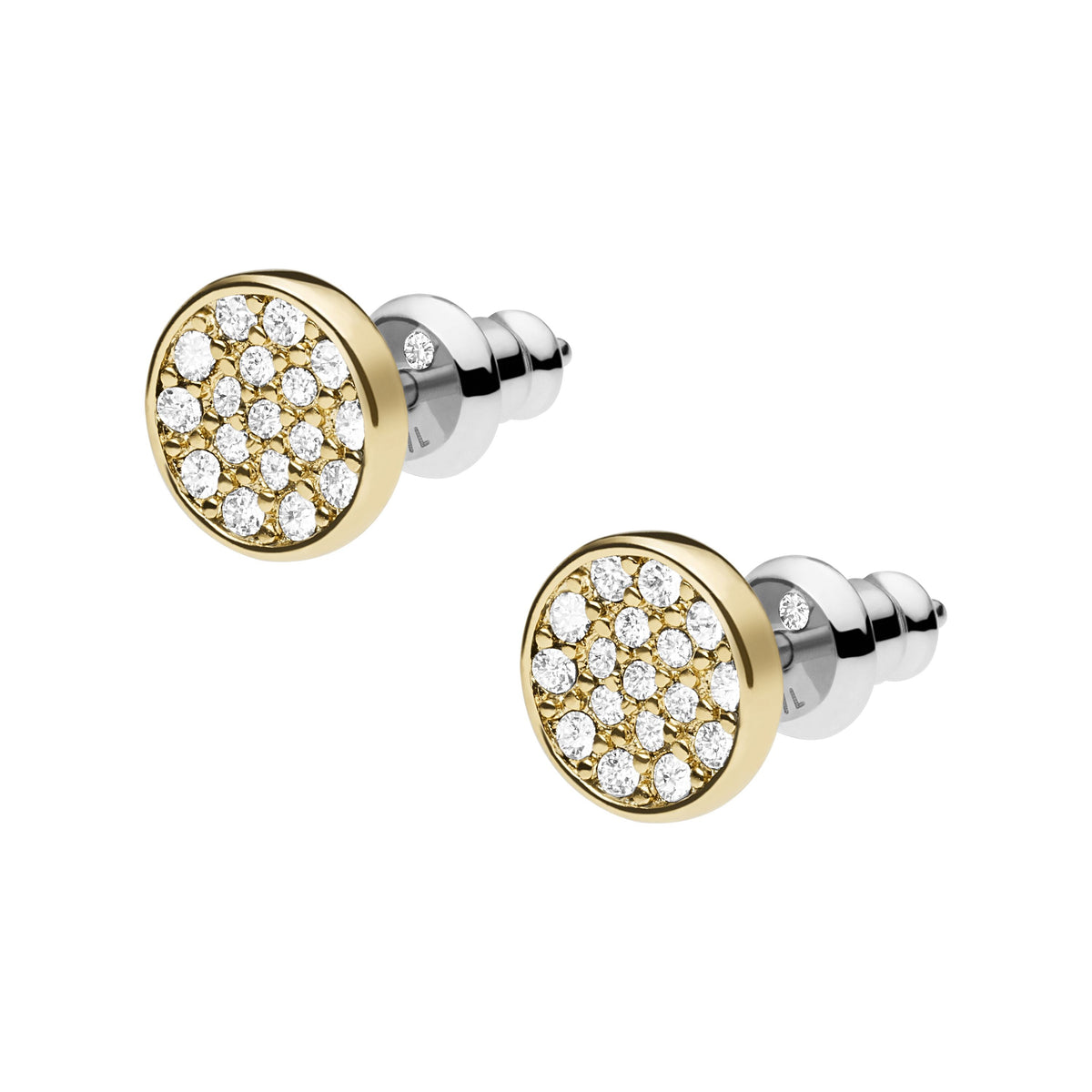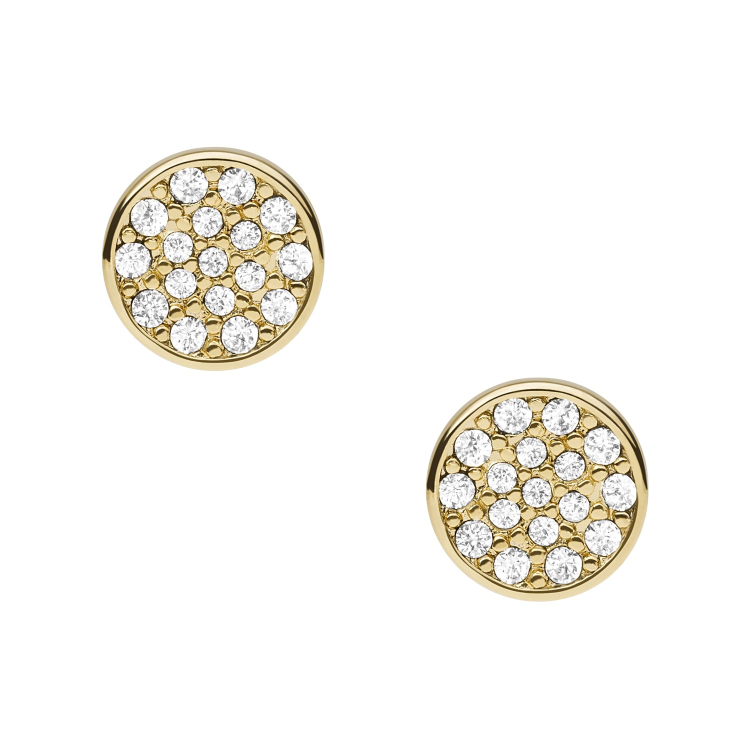 Crafted in gold-tone brass with a polished finish. Closure: post back.