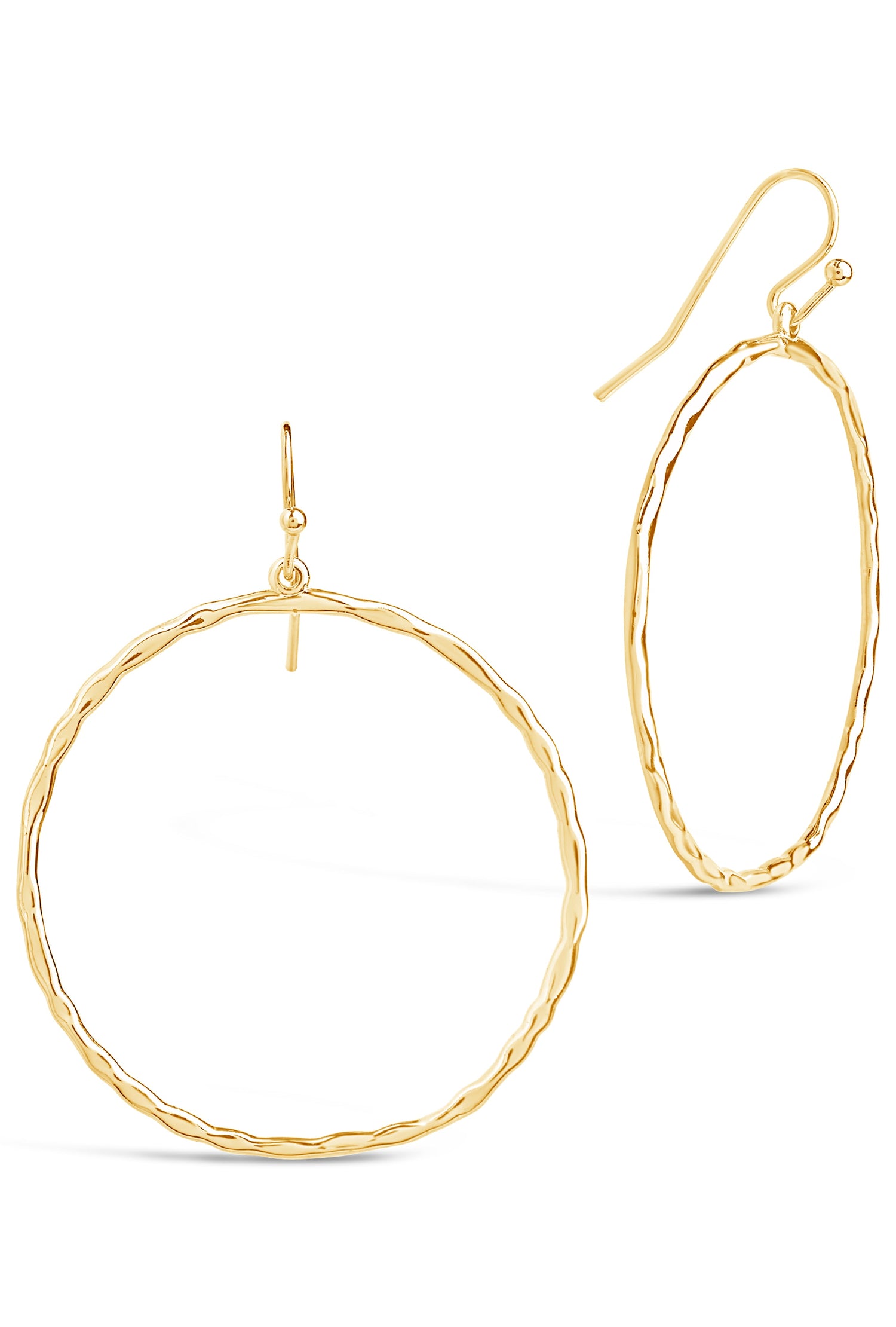 Crafted in 14K gold, 14K rose gold, or rhodium-plated brass. Features a 1.25-inch circle design. Lead- and nickel-free. Secures with fish hook posts.