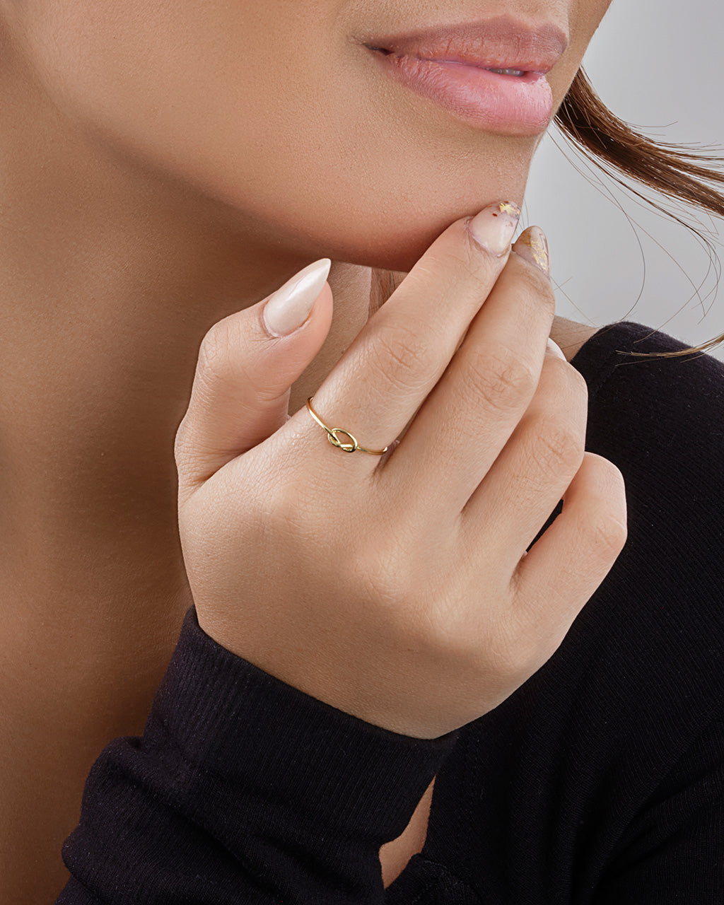 This Thin Love Knot Ring by Eye Candy LA is a delicate symbol of everlasting love and connection. Its elegantly intertwined knot design represents the unbreakable bond between two souls, making it a meaningful gift for someone special. Whether worn as a promise ring or a daily reminder of love, its timeless design complements any style. Available in gold, silver, and rose gold tones.