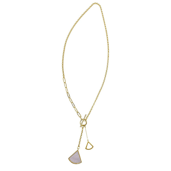 This Mixed Chain Toggle Y-Ginkgo Leaf Drop Necklace by Eye Candy LA captures nature’s beauty in a contemporary Y-drop silhouette. Featuring a delicate mix of chains and two ginkgo leaf pendants, this piece adds organic elegance to any look. The toggle closure enhances its modern yet timeless appeal.