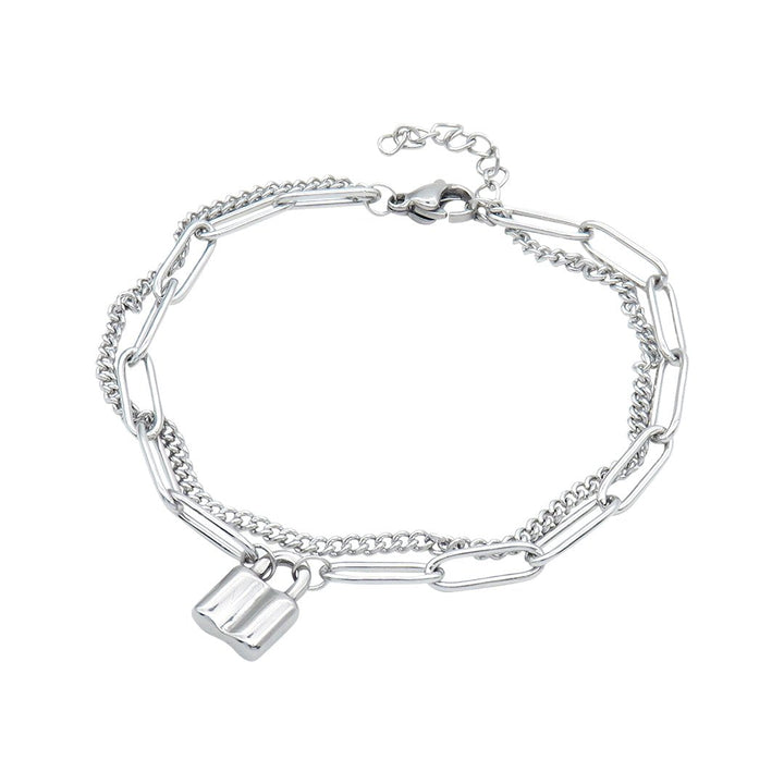 This Padlock Mixed Chain Bracelet by Eye Candy LA combines industrial charm with modern elegance. Featuring a sleek padlock pendant and mixed-link chain, this adjustable bracelet is a chic everyday accessory that layers beautifully with other pieces.