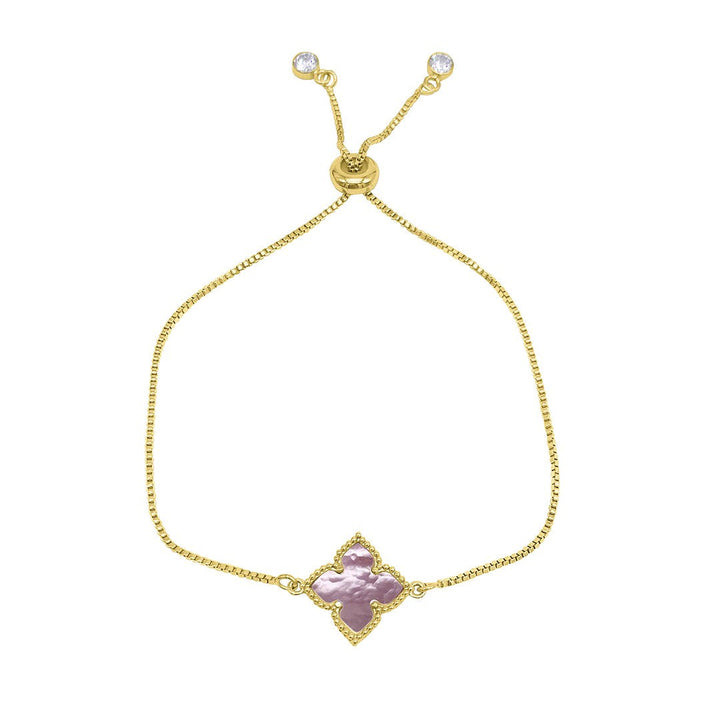 Adornia Four Point Flower Bolo Bracelet Pink Mother of Pearl gold