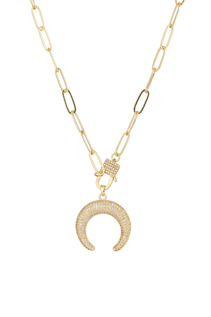 This Hook Paperclip Necklace by Eye Candy LA adds a bold touch to any outfit. Featuring a sleek hook pendant adorned with sparkling CZ crystals, this contemporary piece hangs from a modern paperclip chain for a chic and edgy look.
