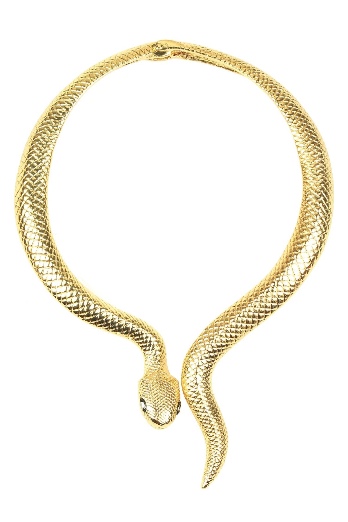 This Python Necklace by Eye Candy LA is an alluring choker that captures the beauty and mystique of the serpent. Designed to wrap around the neck, this statement piece embodies power and elegance in a unique, reptilian-inspired design.