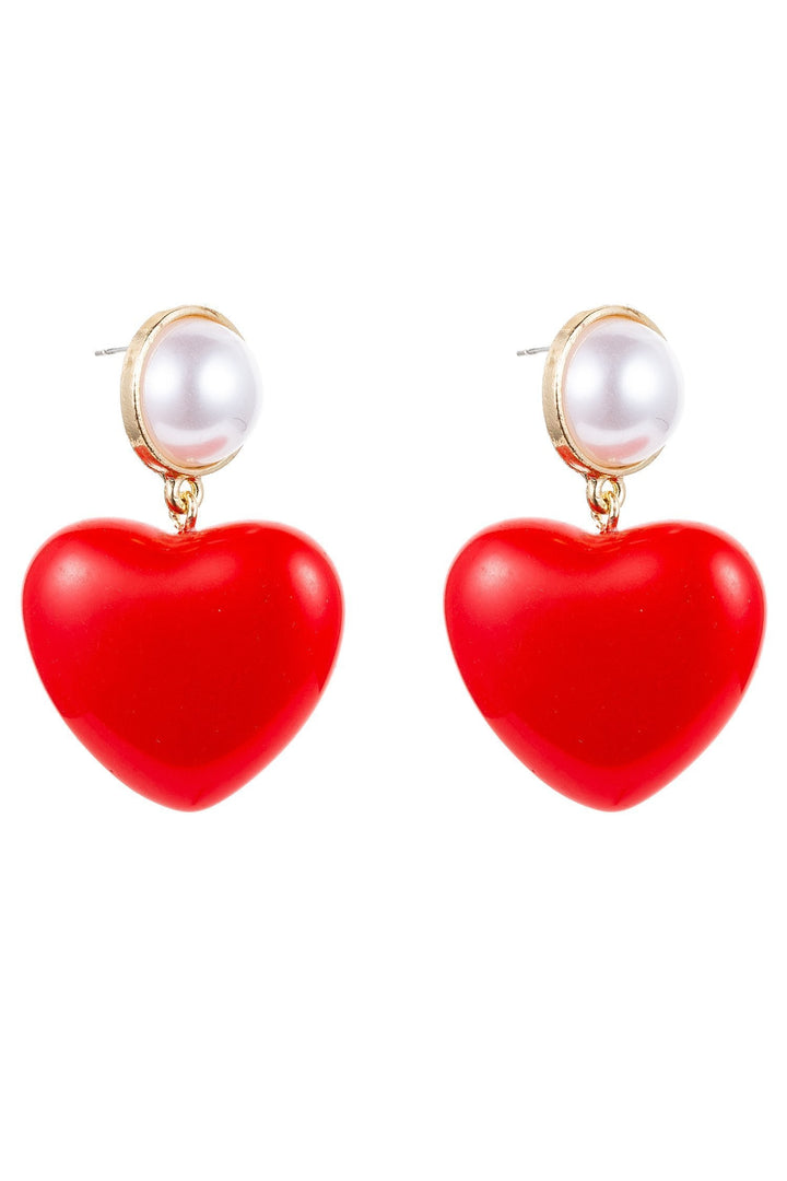 These Cor Earrings by Eye Candy LA offer a playful and romantic touch to any outfit. Featuring a glass pearl stud with a striking red enamel heart, these earrings symbolize love and loyalty in a flirty, stylish design.