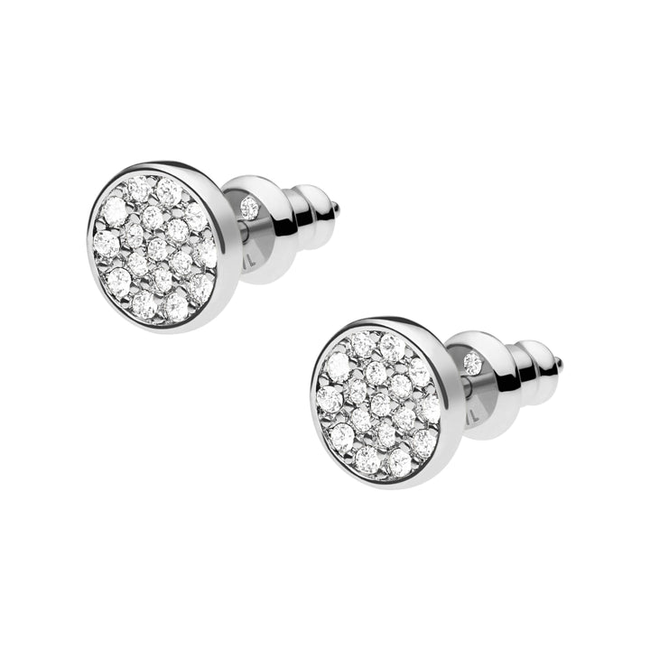 Crafted in silver-tone brass with a polished finish. Secured with post closures.