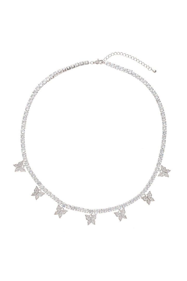 The Parisa Butterfly Necklace by Eye Candy LA is a statement piece with a whimsical touch. The butterfly charms are adorned with CZ crystals, giving the necklace an enchanting and magical vibe. Perfect for adding a touch of sparkle and elegance to your outfit.