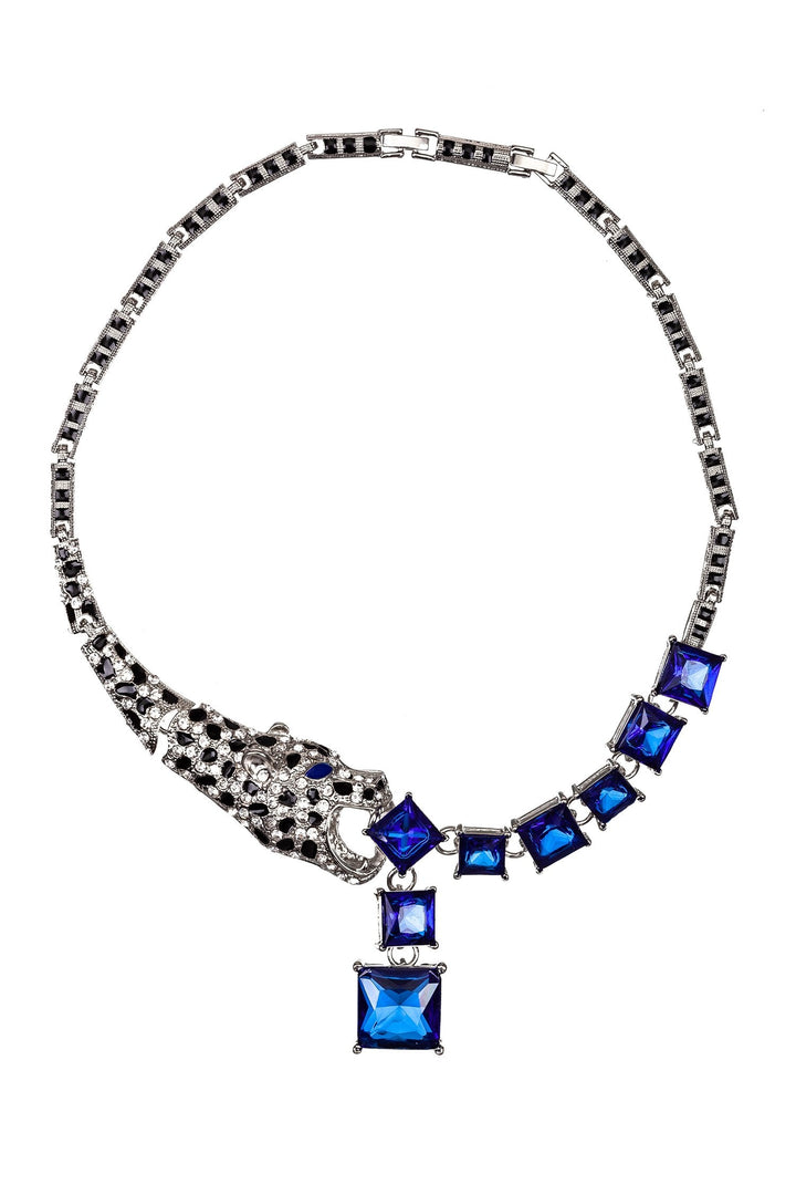The Lynx Necklace - Blue by Eye Candy LA is a fierce and elegant piece. The lynx head pendant is decorated with blue CZ crystals that catch the light, making this necklace a striking addition to any jewelry collection. The silver-tone brass design adds sophistication to the bold pendant.