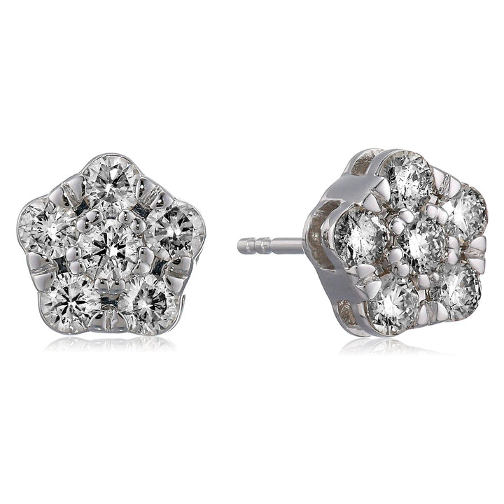 Made from 14K white gold with 12 natural round diamonds (1 cttw). Diamond clarity: I1-I2, color: M-N. Push-back findings (butterfly friction backs).