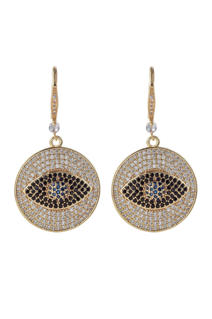 These Julian 18k Earrings by Eye Candy LA feature a stunning evil eye design plated with 18k gold. The assortment of CZ crystals adds a radiant sparkle, enhancing the mystical symbolism of protection. These dangle earrings pair perfectly with an evil eye necklace, completing a cohesive and stylish set. The design captures both elegance and mysticism, making them a perfect statement piece for any occasion.