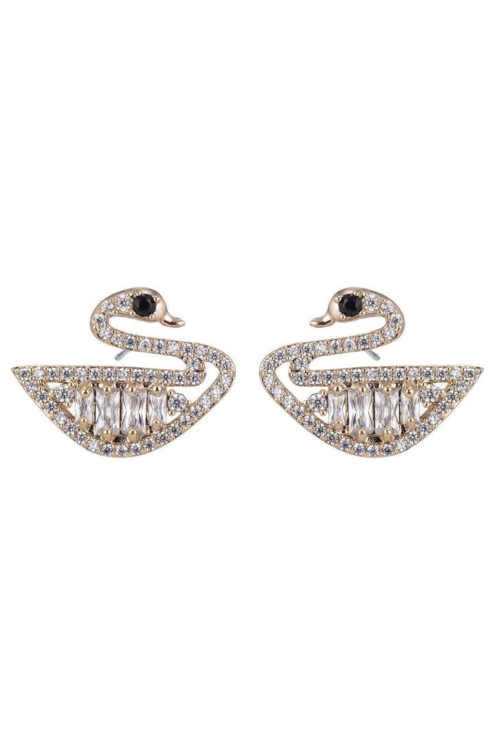 These Audrina Earrings by Eye Candy LA embody grace and poise with their swan-inspired design, adorned with CZ crystals for added sparkle. The swan is a timeless symbol of elegance and beauty, and these stud earrings convey a sophisticated charm. Ideal for a refined look, these earrings bring a sense of serenity and grace to your style.