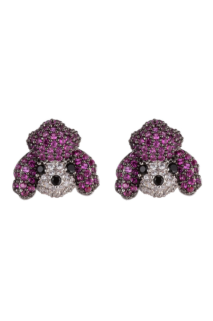These Fifi Earrings by Eye Candy LA feature adorable pink poodle studs, perfect for dog lovers. The fun design, embellished with glass crystals, adds a sweet and charming touch to any outfit. These playful earrings are great for casual wear and are sure to bring a smile to your face whenever you wear them.