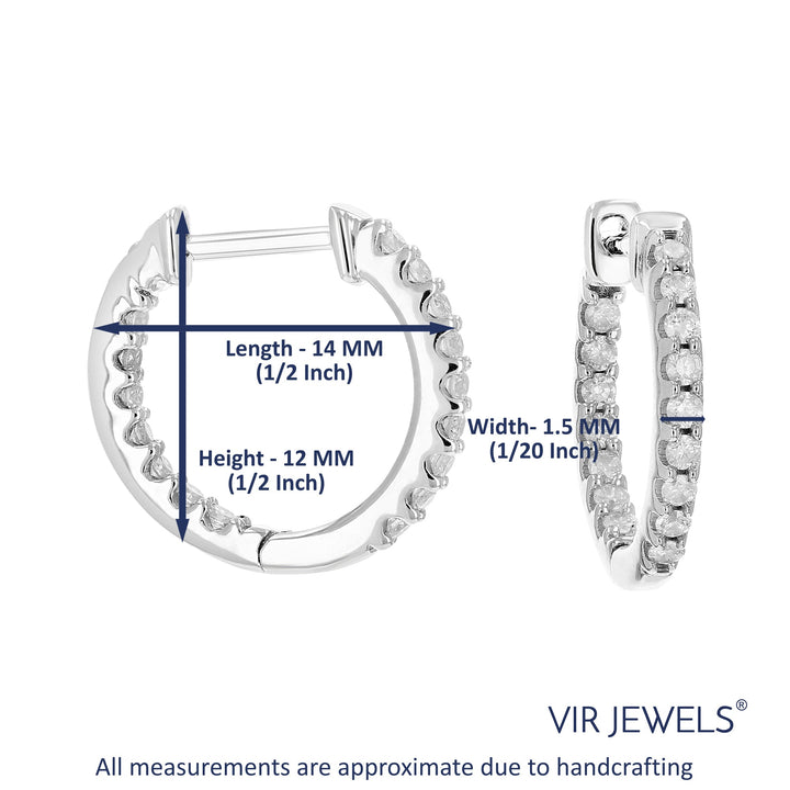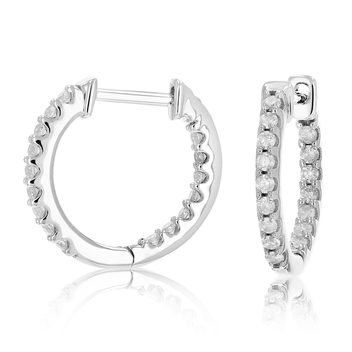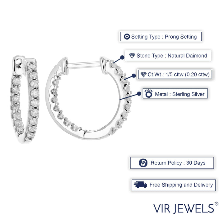 1/5 cttw Inside Out Diamond Hoop Earrings .925 Sterling Silver 32 Stones 1/2 Inch Prong Set