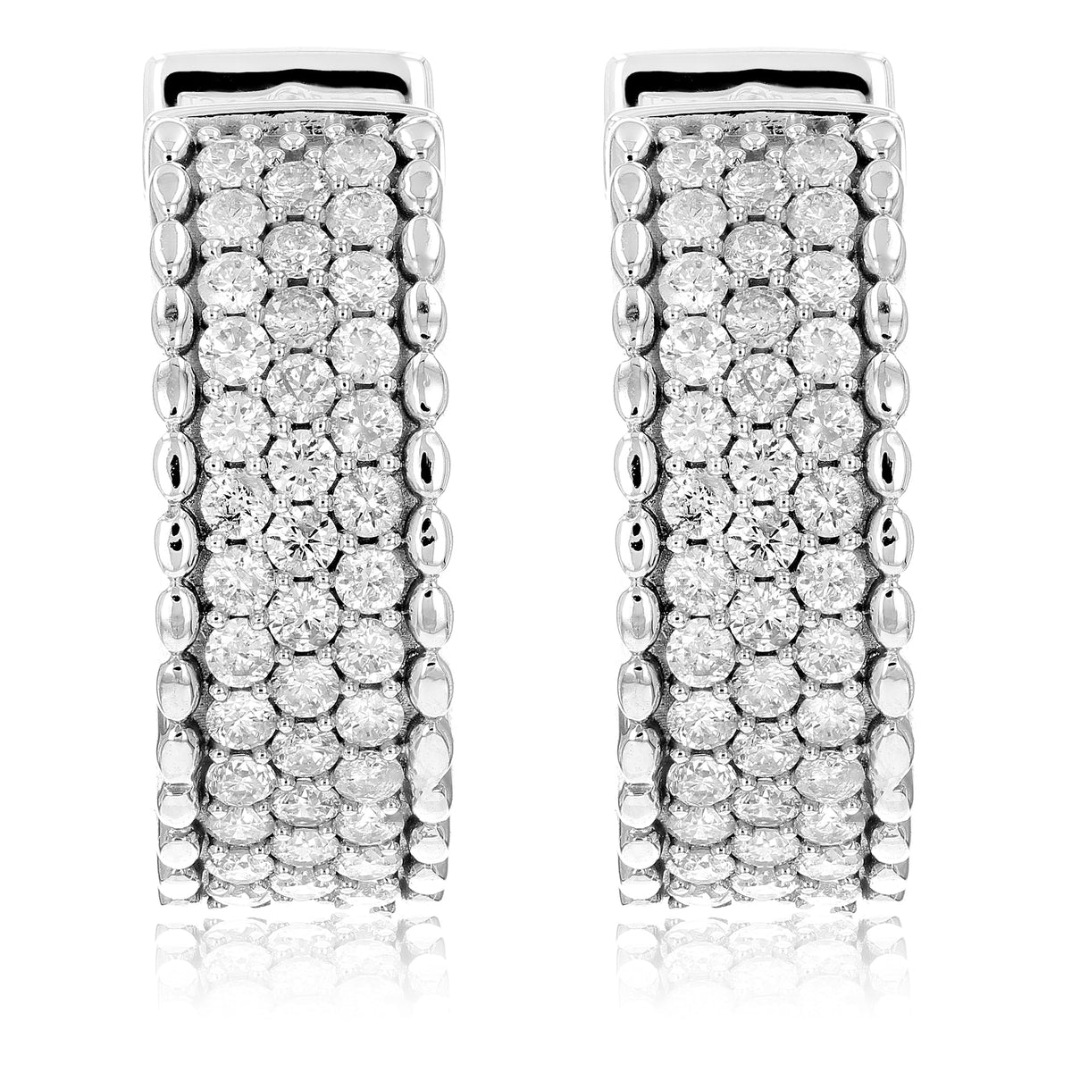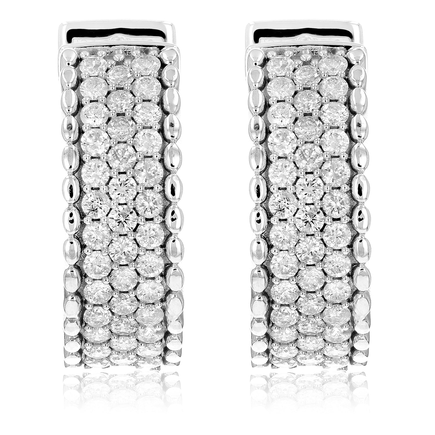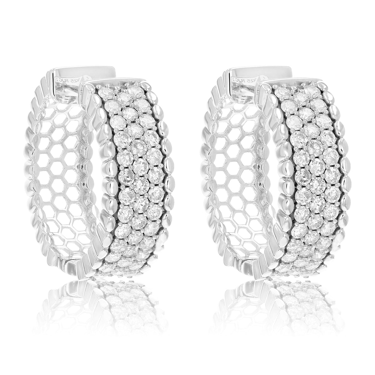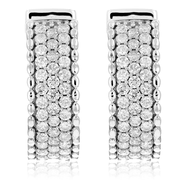 .925 sterling silver with 2 cttw natural round diamonds (76 stones). Width: 1/3” (8mm); Height: 7/8” (22mm). Hinged post closure, rhodium-plated.