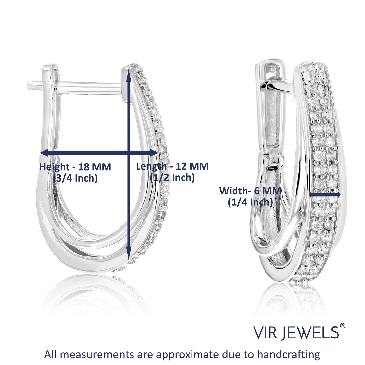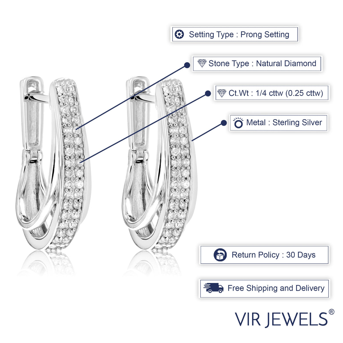 These 1/4 cttw Diamond Hoop Earrings in .925 Sterling Silver by Vir Jewels offer 60 round diamonds set in a two-row design for extra sparkle. The classic hoop design with diamonds prong-set along the entire length makes these earrings a perfect addition to any jewelry collection, suitable for both casual and formal wear.