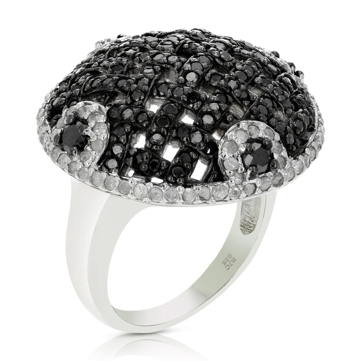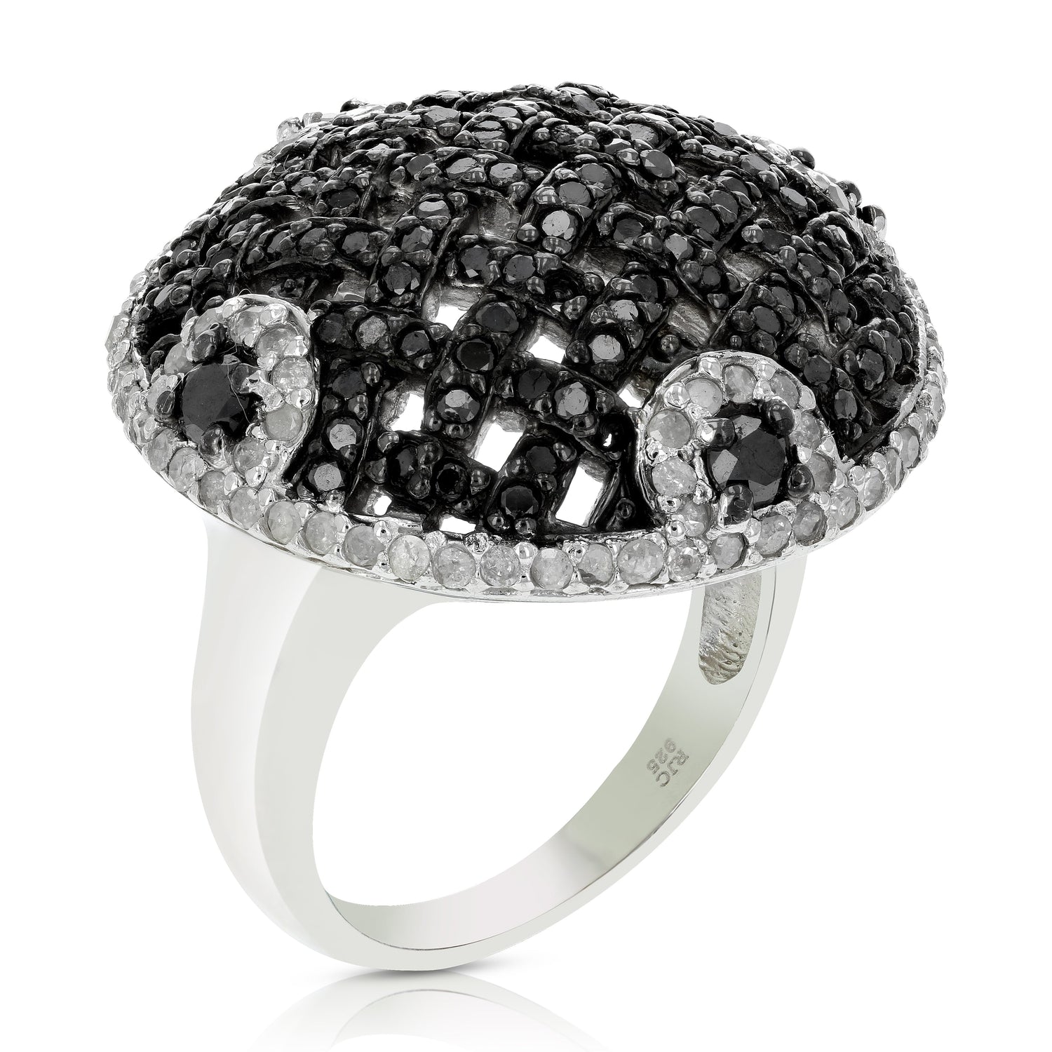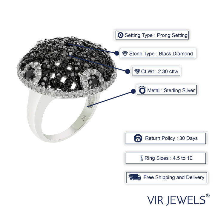 2.30 cttw Black and White Diamond Ring .925 Sterling Silver with Rhodium