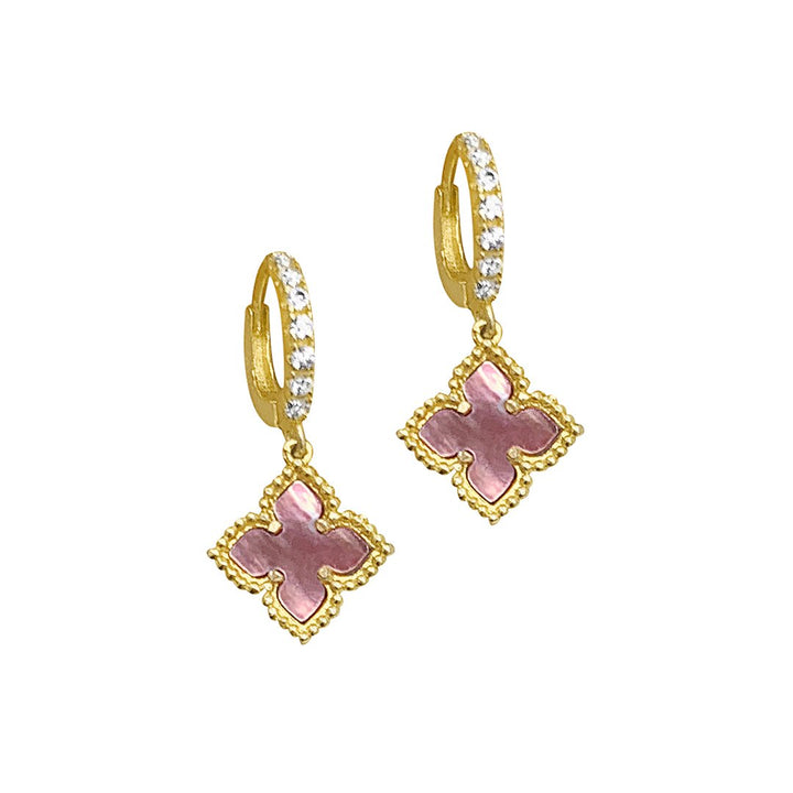 Adornia Adornia Floral Dangle Hoops Pink Mother of Pearl gold