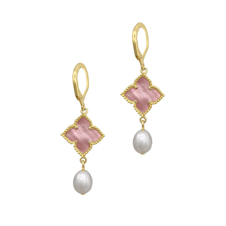 Adornia Adornia Floral and Pearl Drop Earrings Pink Mother of Pearl gold