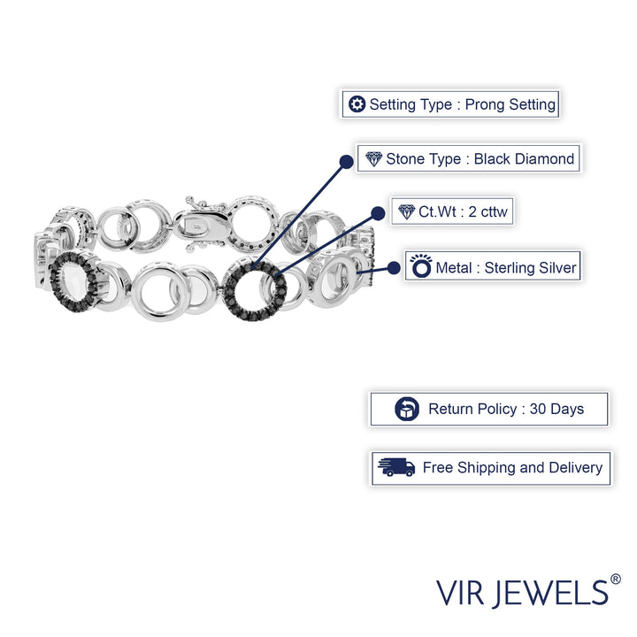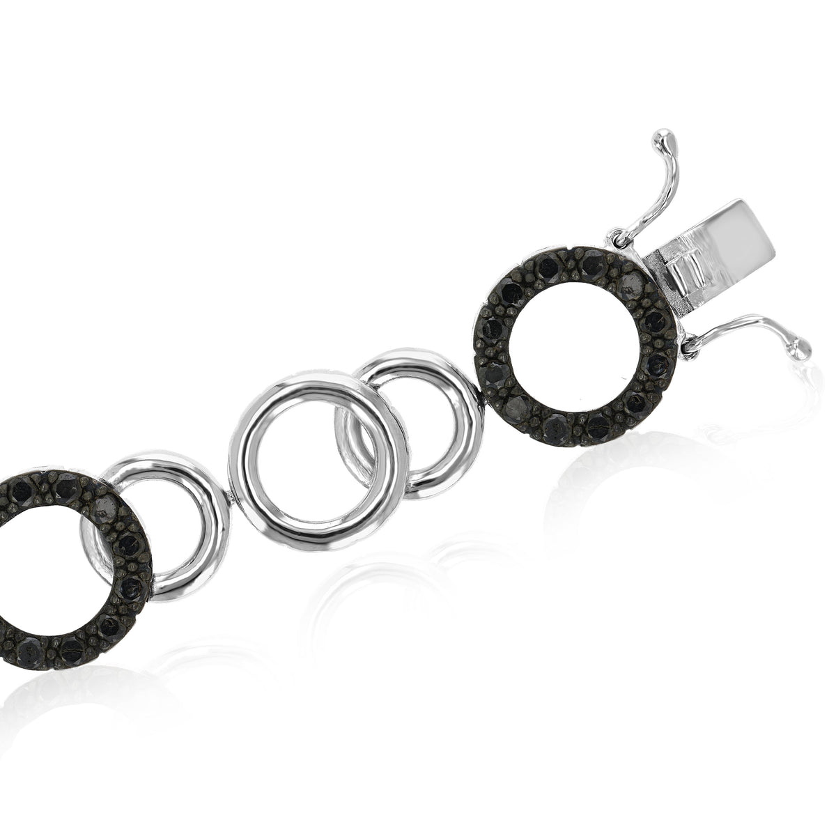 2 cttw Black Diamond Tennis Bracelet .925 Sterling Silver With Rhodium Circle