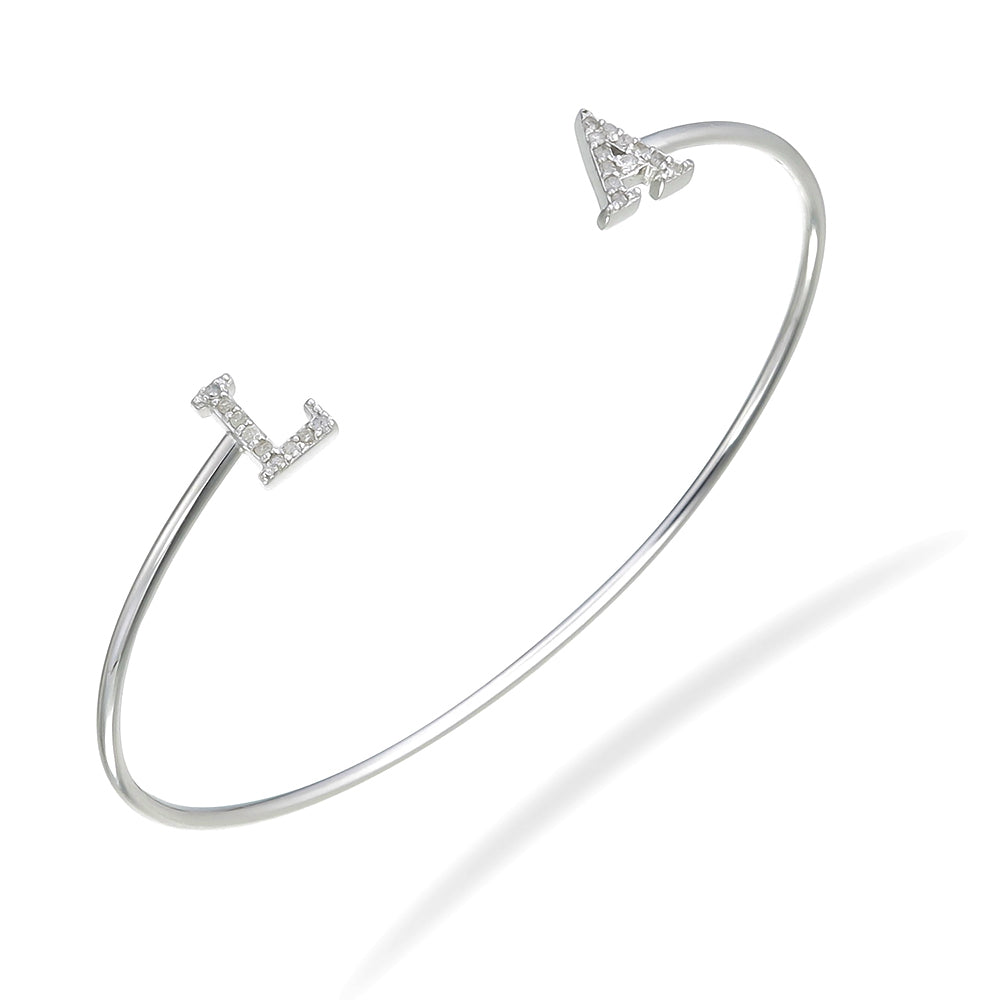 1/8 cttw Diamond Bangle Bracelet .925 Sterling Silver With Rhodium Los Angeles