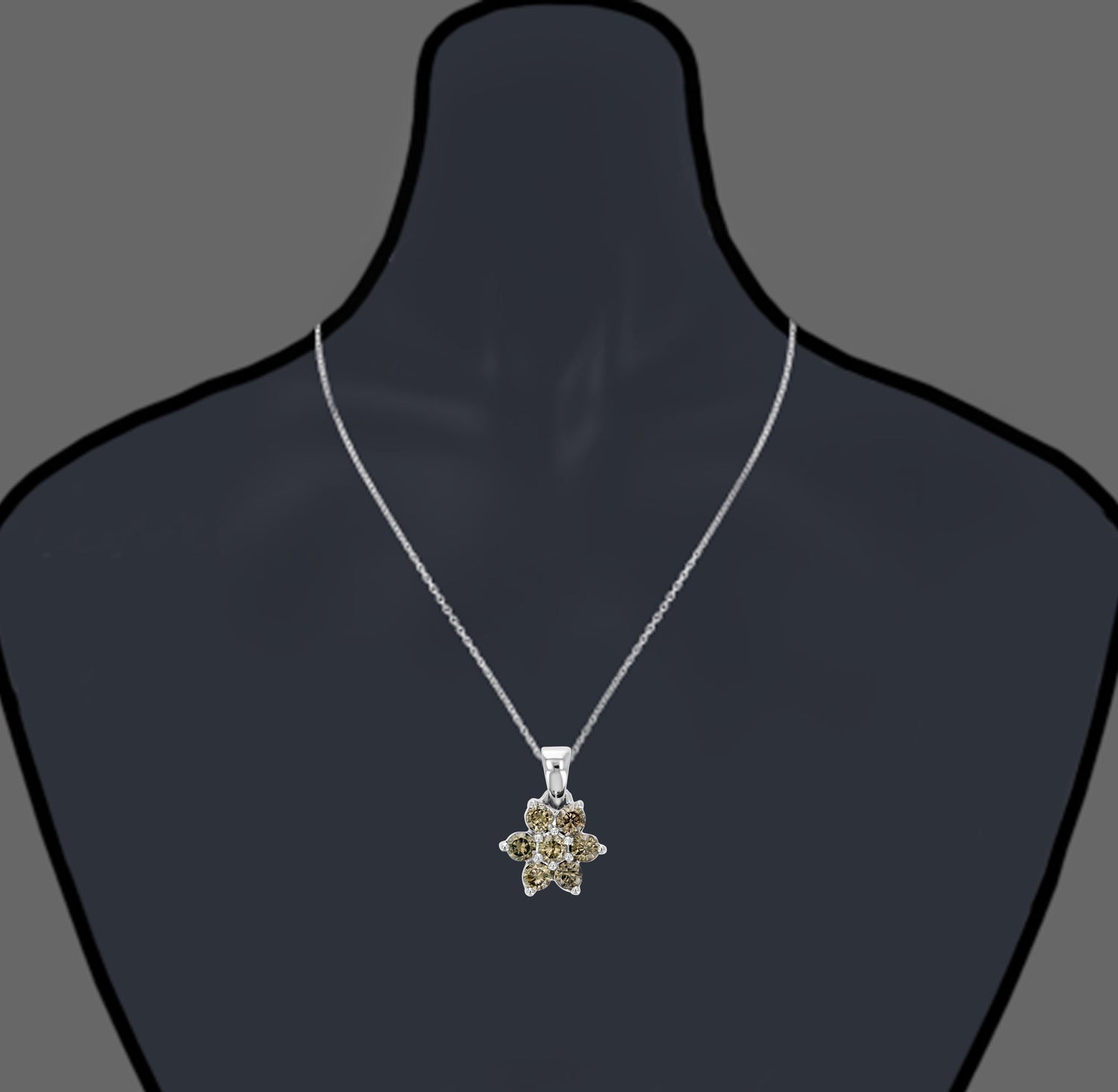 The Champagne Diamond Cluster Composite Pendant Necklace by Vir Jewels offers a luxurious blend of sophistication and sparkle. Featuring a stunning cluster of seven natural champagne diamonds, totaling 1/2 cttw, set in 10K white gold, this pendant exudes warmth and charm.