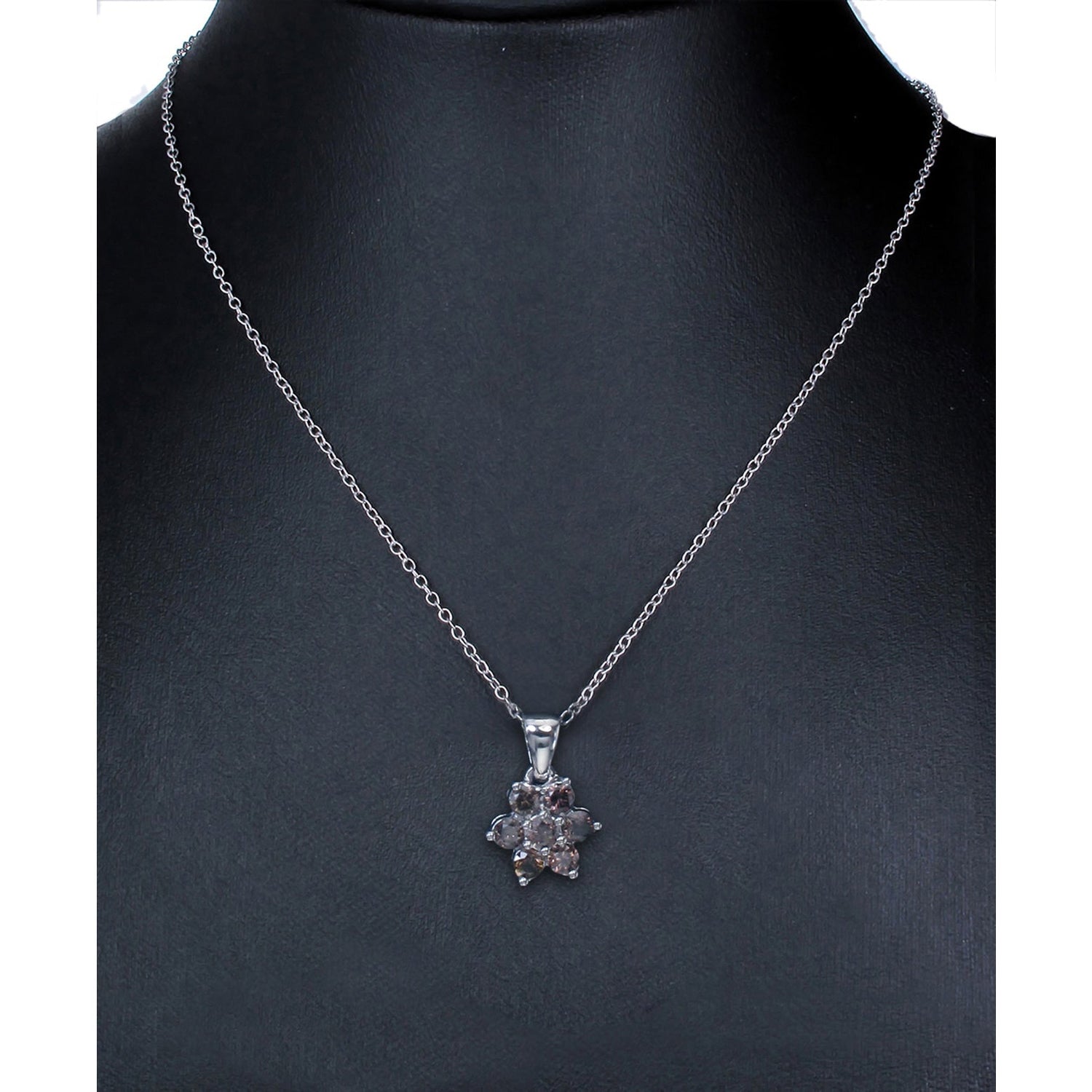 1/2 cttw Champagne Diamond Cluster Composite Pendant Necklace 10K White Gold