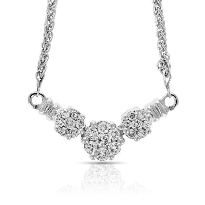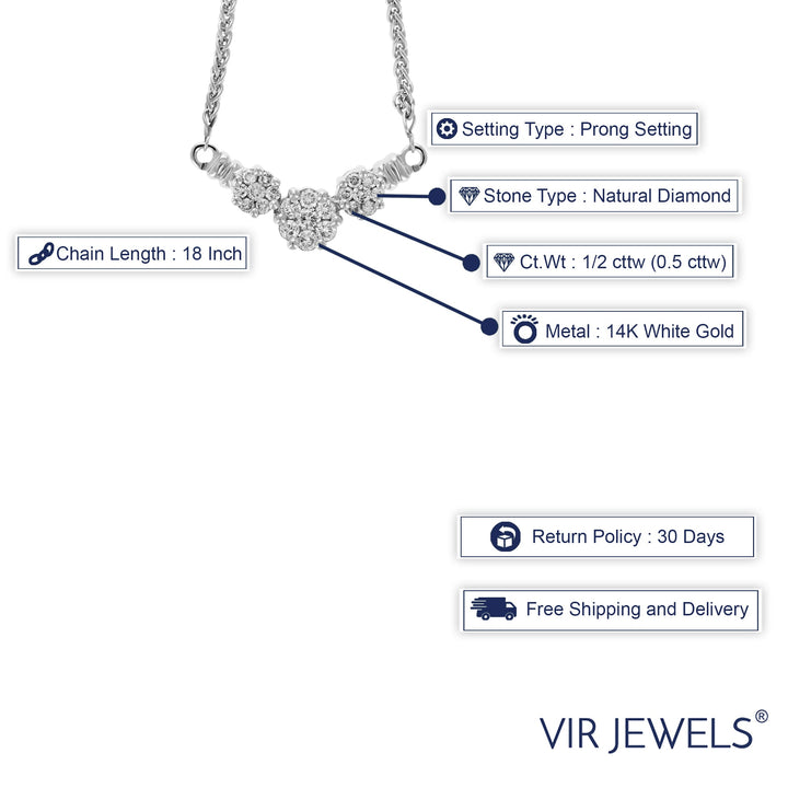1/2 cttw 3 Stone Cluster Diamond Pendant Necklace 14K White Gold with Chain