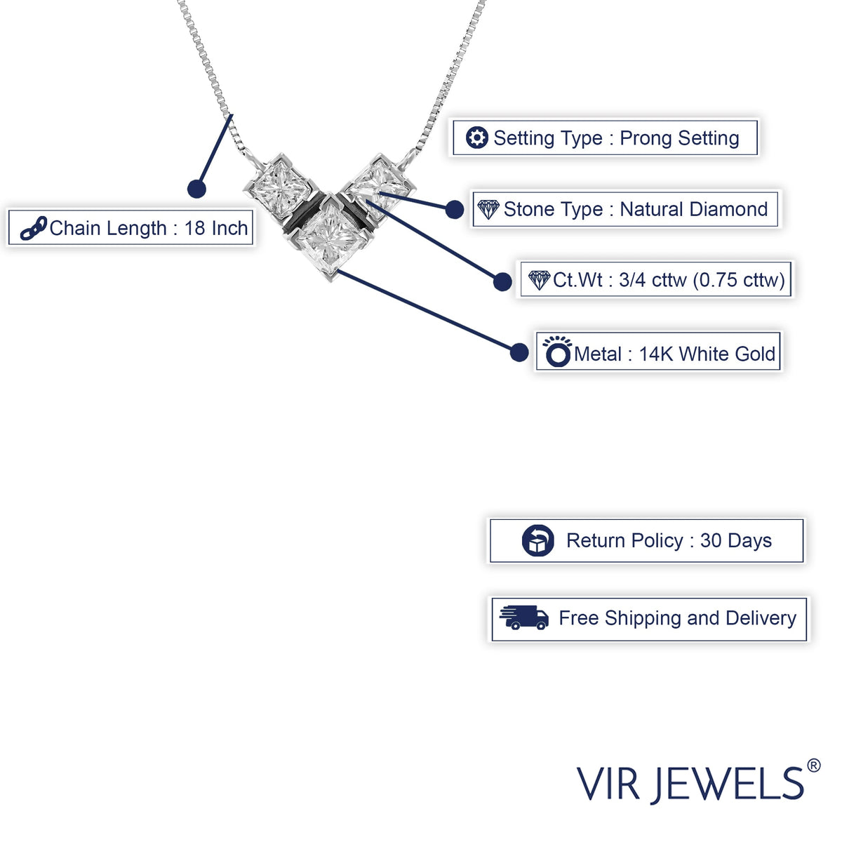 3/4 cttw 3 Stone Princess Cut Diamond Pendant Necklace 14K White Gold with Chain