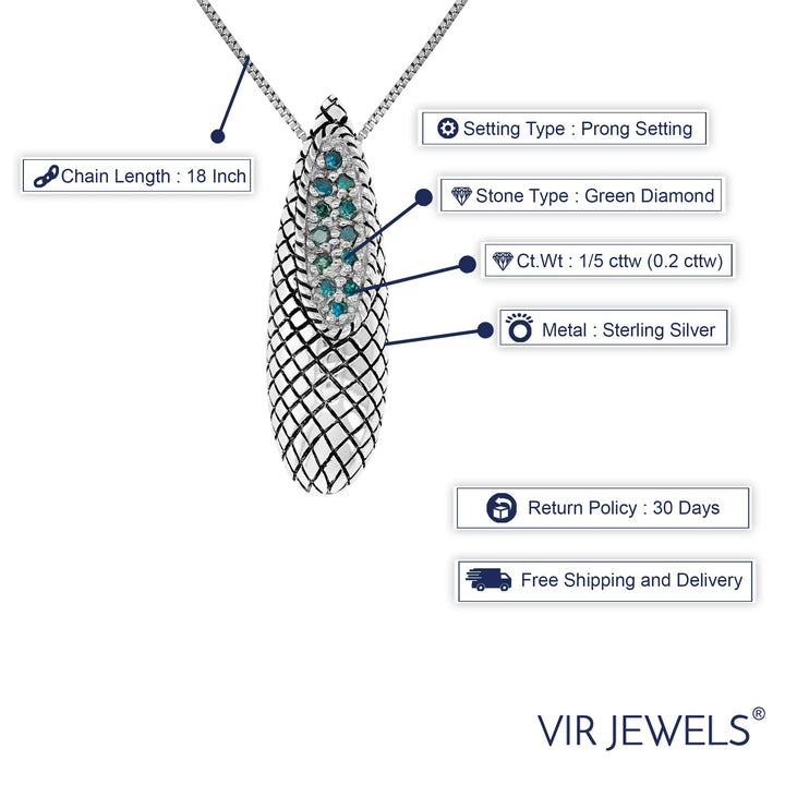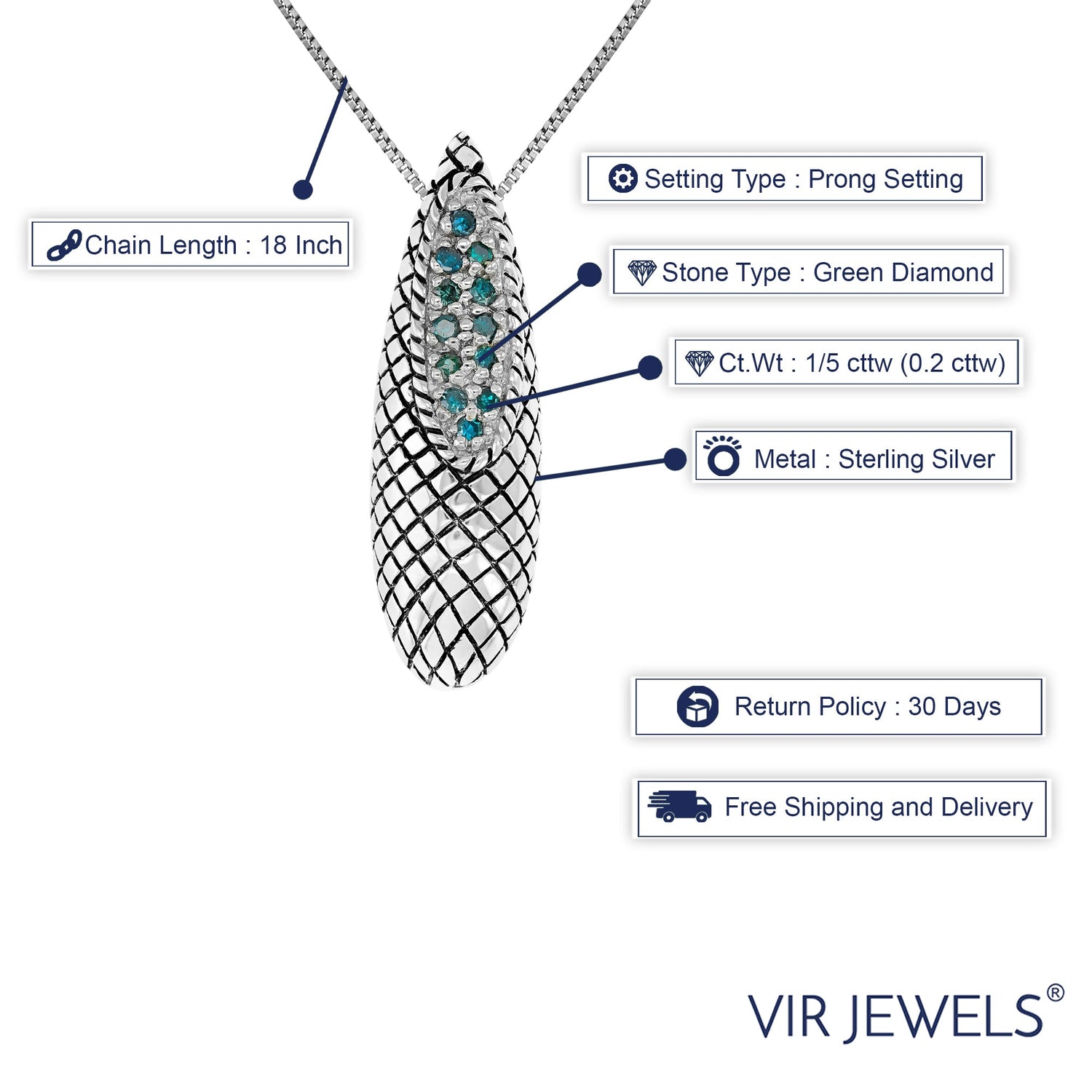 1/5 cttw Green Diamond Pendant Necklace .925 Sterling Silver with 18 Inch Chain