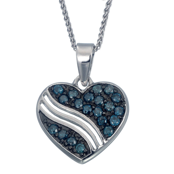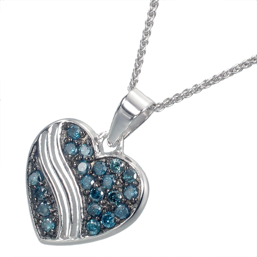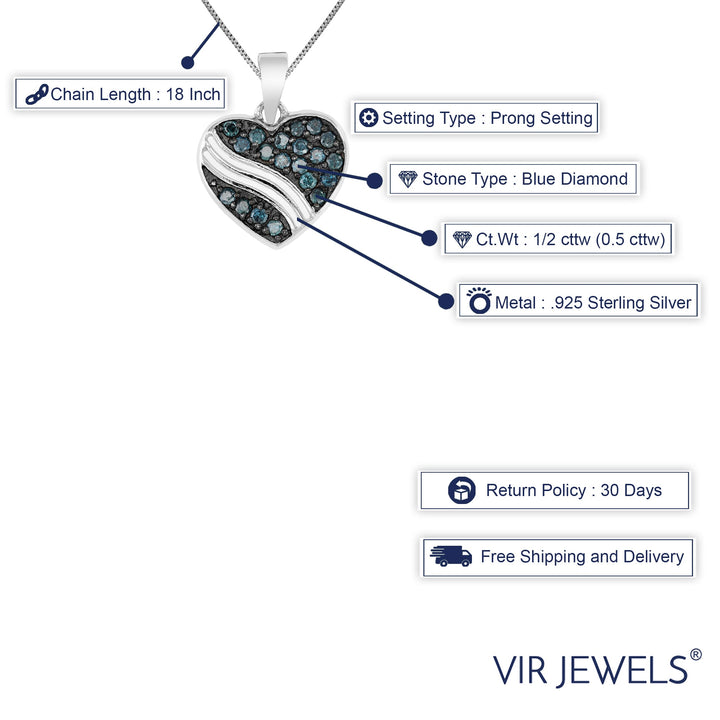 1/2 cttw Blue Diamond Heart Pendant Necklace .925 Sterling Silver with Chain