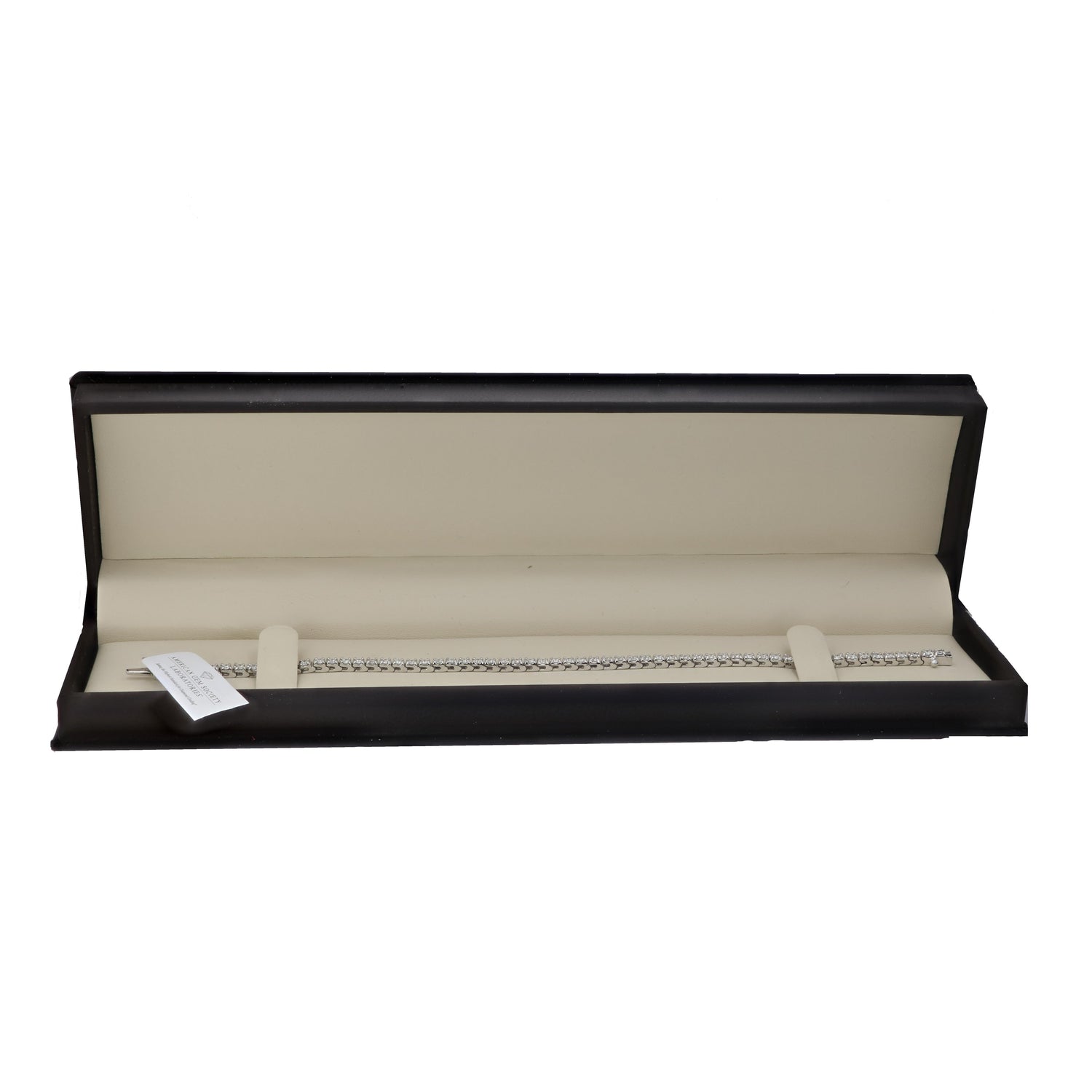 Handcrafted in 14K white gold with 74-81 natural round diamonds. Total diamond weight: 2 cttw. Clarity: SI2-I1. Color: I-J. Diamonds are set in a prong setting. Bracelet length: 7 inches. Secured with a box and tongue safety clasp. April birthstone.