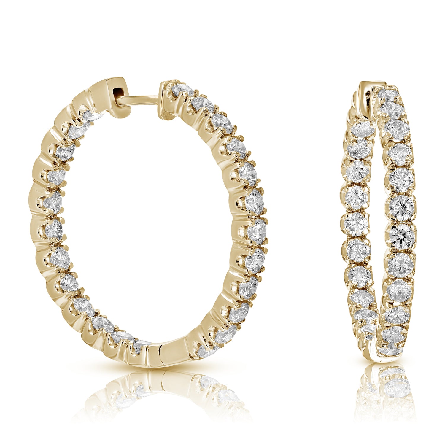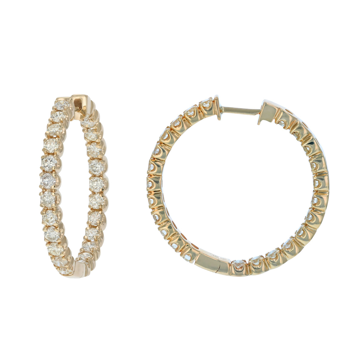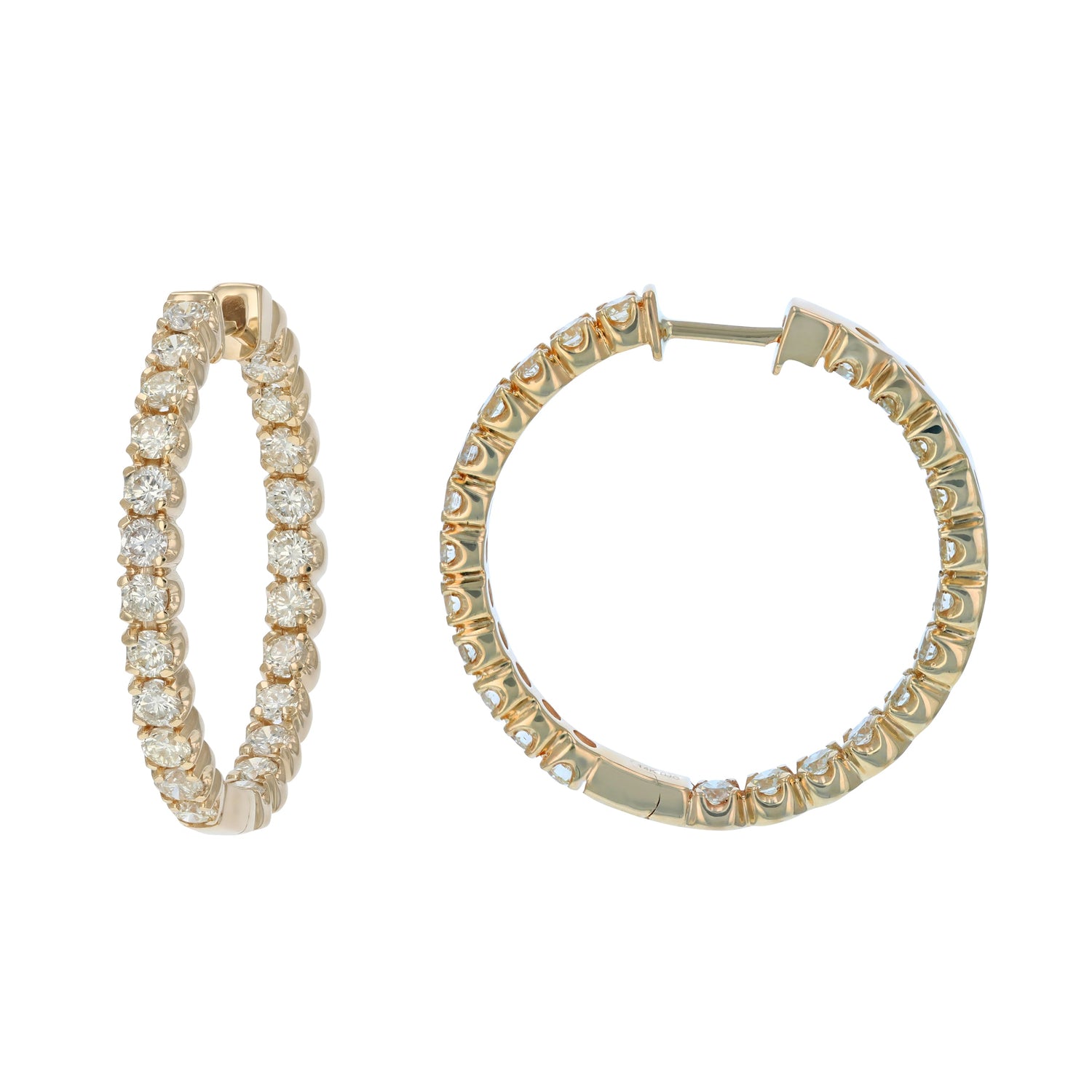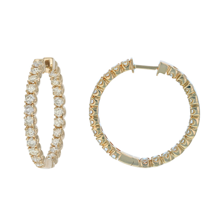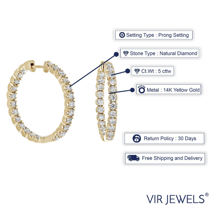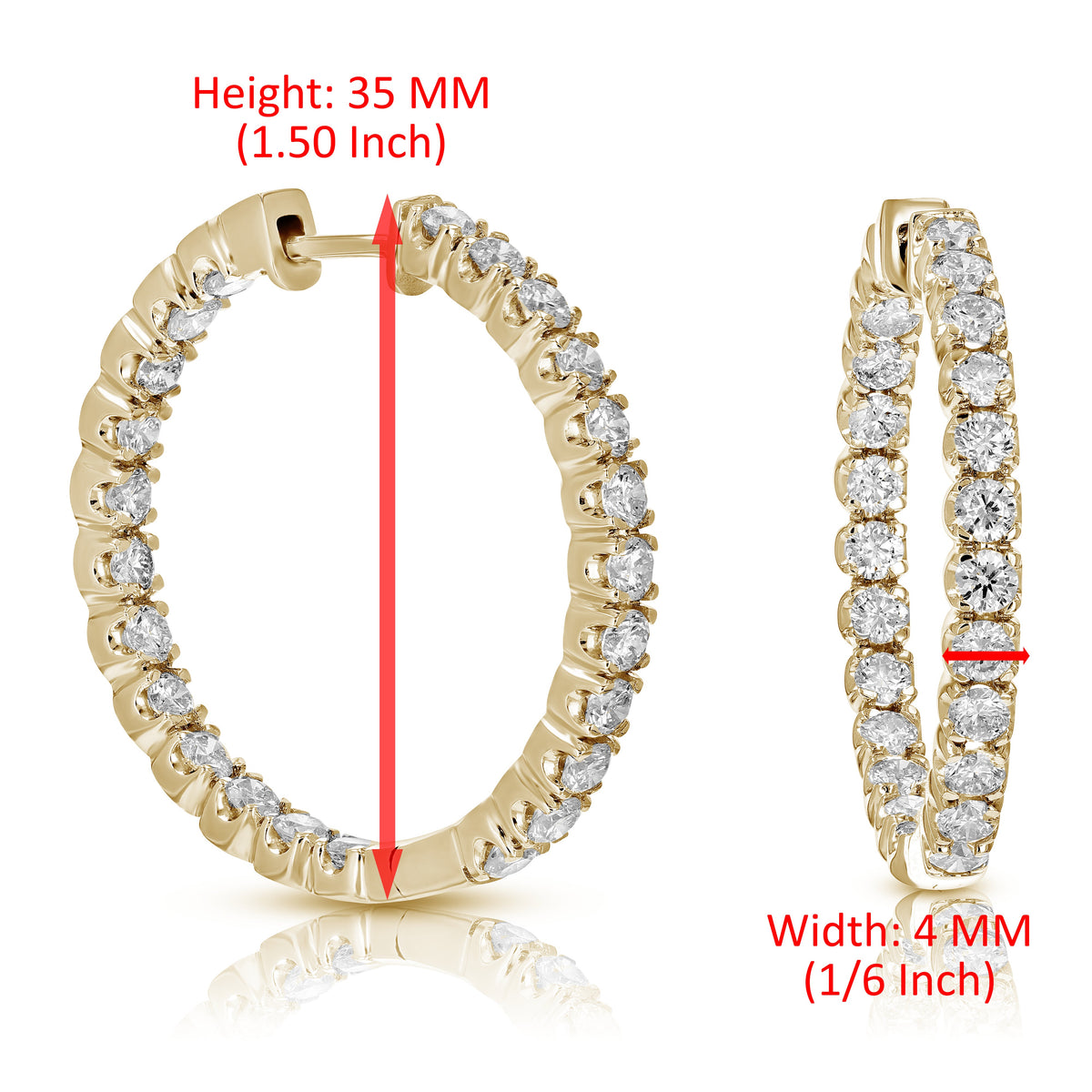 5 cttw Diamond Inside Out Hoop Earrings 14K Yellow Gold Round Prong Set 1.50 Inch